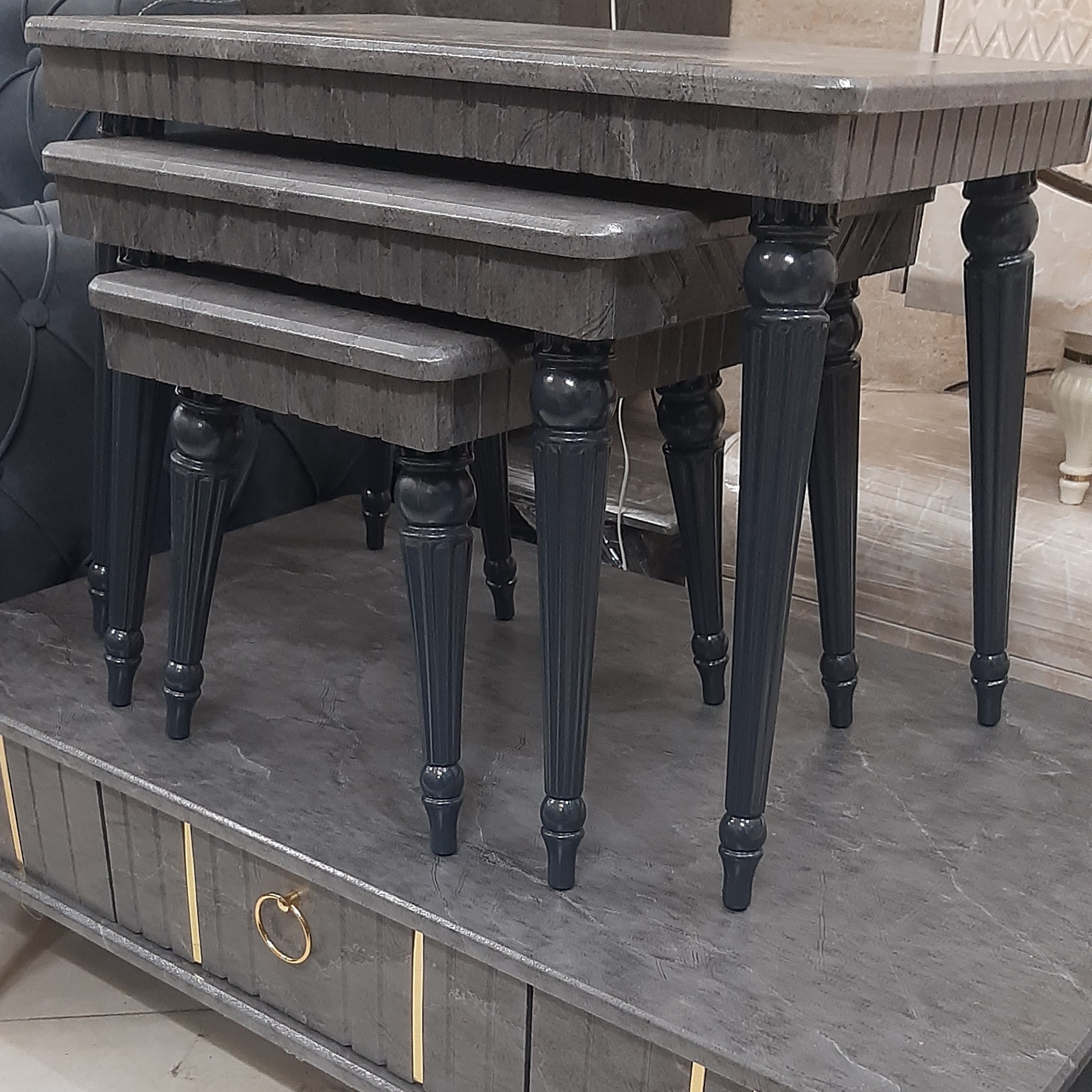 جلو مبلی وکیوم شامل یک میز بزرگ و سه عدد عسلی است که عسلی ها زیر هم دیگر می روند. رنگ بندی سلیقه ای است. رنگ بندی بیشتر شامل سفید، کلیاف، والیس، بتنی ، مشکی یا دودی است. مشتریان عزیز موقع سفارش عکس یا عنوان رنگ را ذکر کنند. جنس رویه میز ام دی اف با رویه وکیوم ضدخش می باشد. جنس پایه ها نوعی پلاستیک فشرده محکم و بادوام می باشد . میز اصلی دارای کشو می باشد. میزعسلی بصورت پک شده در کارتن و در مشمای حباب دار ارسال می شود.