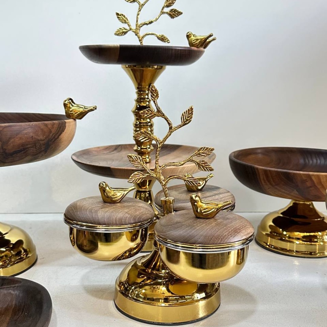 ظروف چوبی ست برگ برنجی پنج تکه ارسال رایگان مبلمونسرا مدل 272583