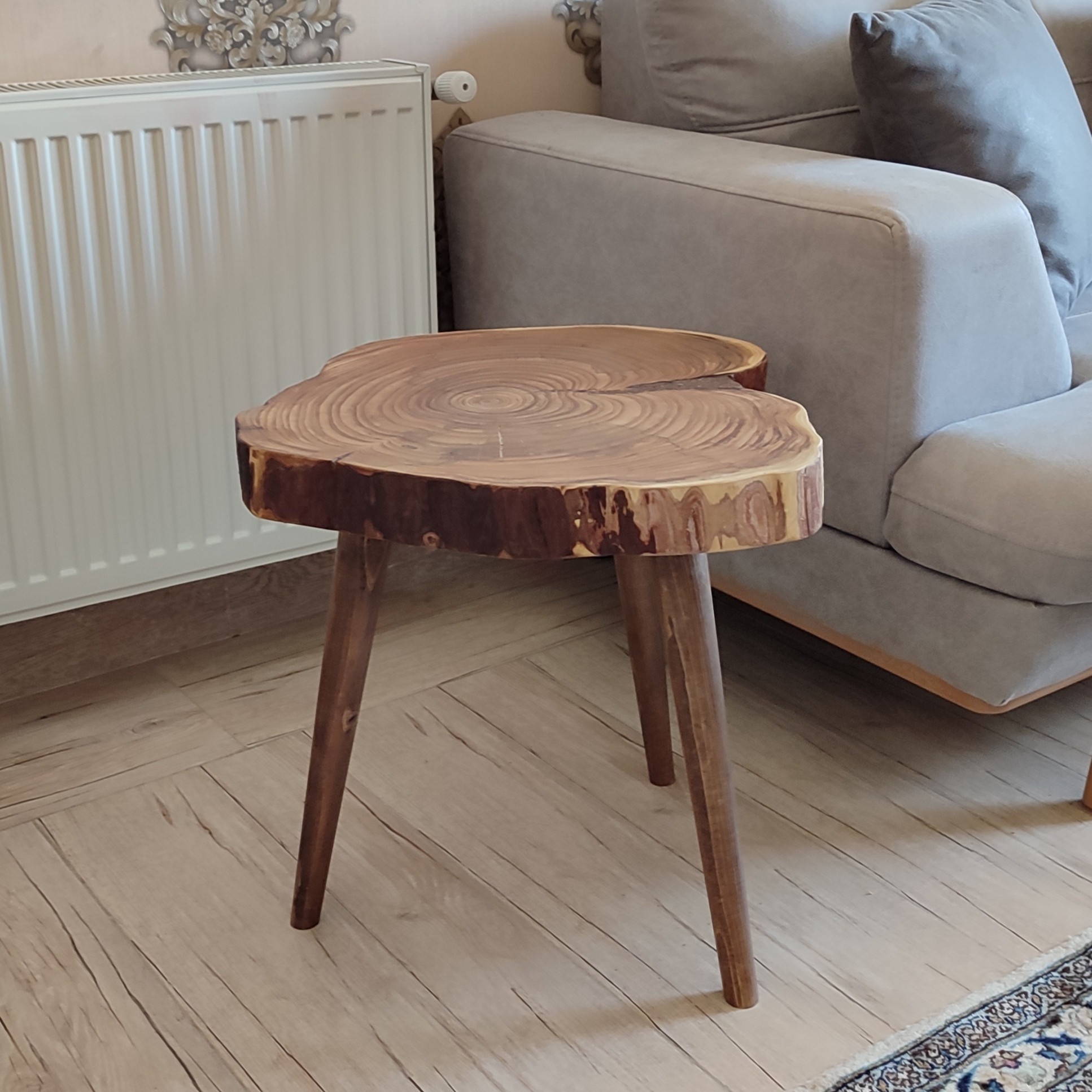 گلمیز سبک روستیک با سه پایه خراطی شده. قطر و ارتفاع 40 با ضخامت پنج سانت با این گلمیز طبیعی روح طبیعت را به منزل خود بیاورید زیبا و جادار با ظرفیت چهار پیش دستی قابل چیدمان به تمام رنگ بندی مبل ها