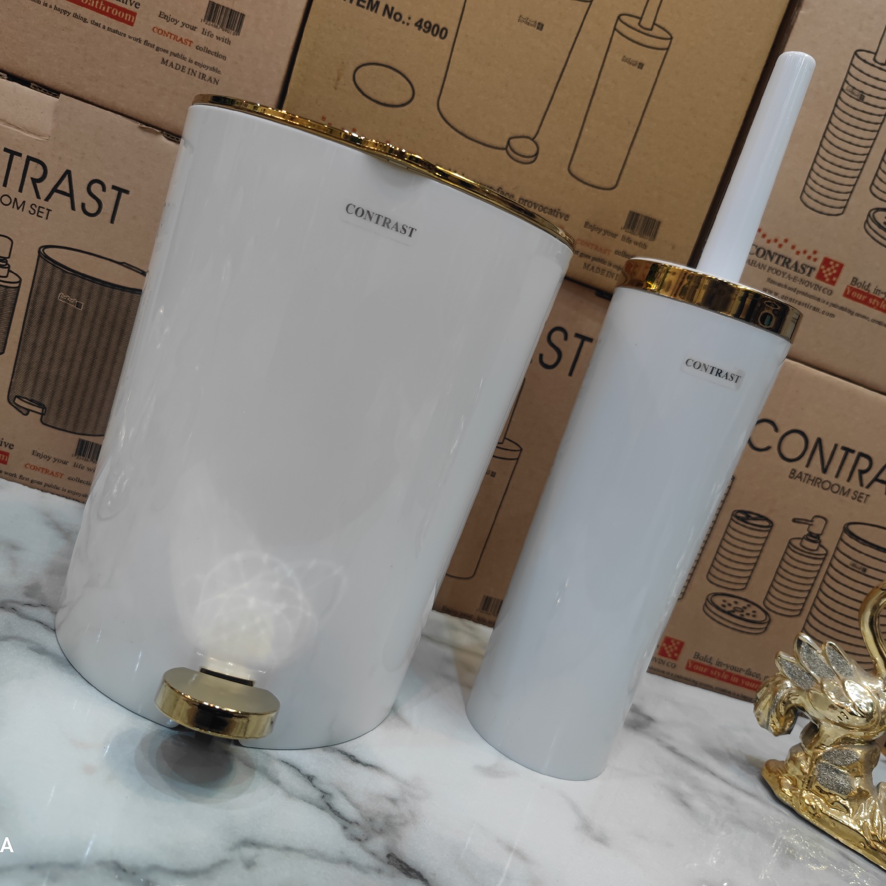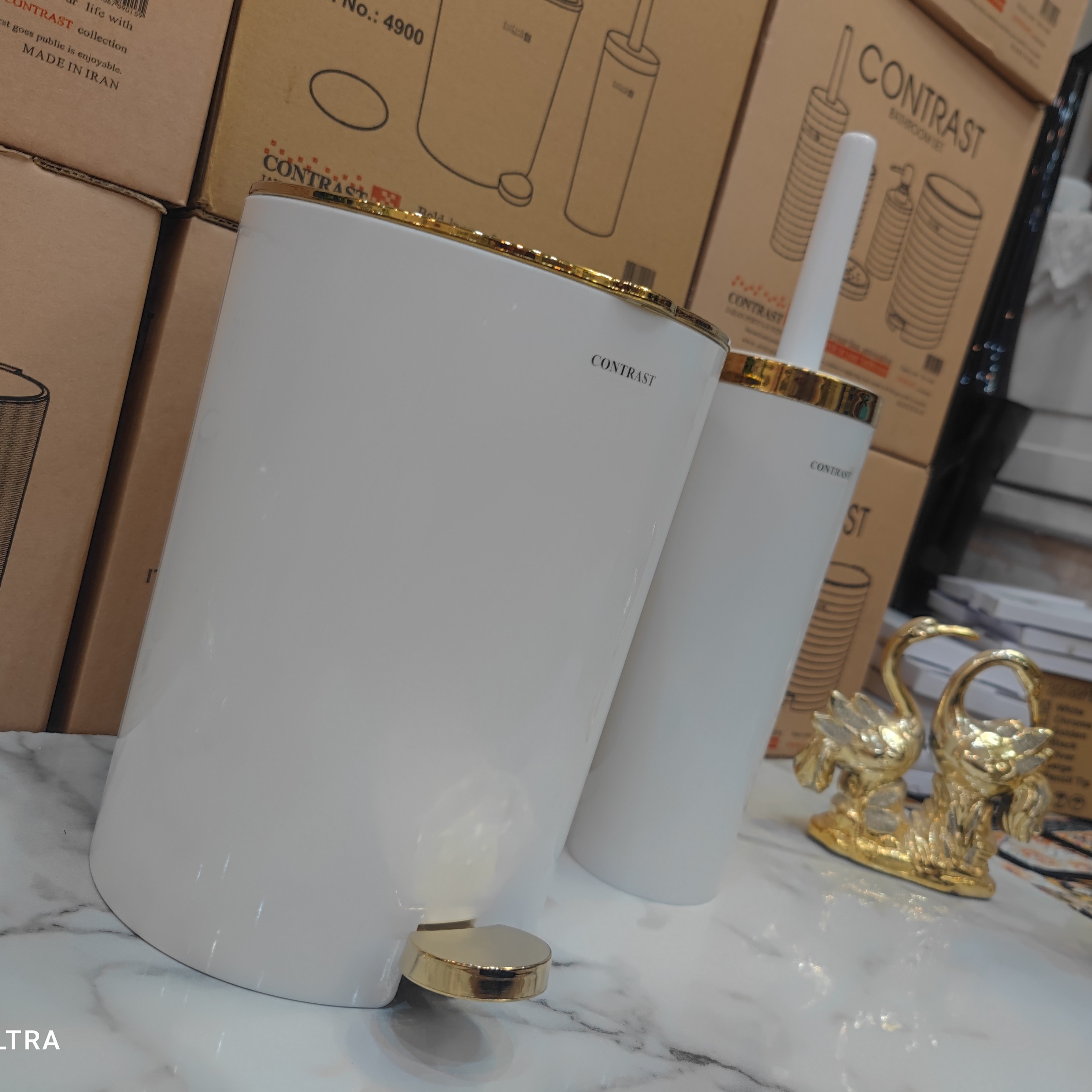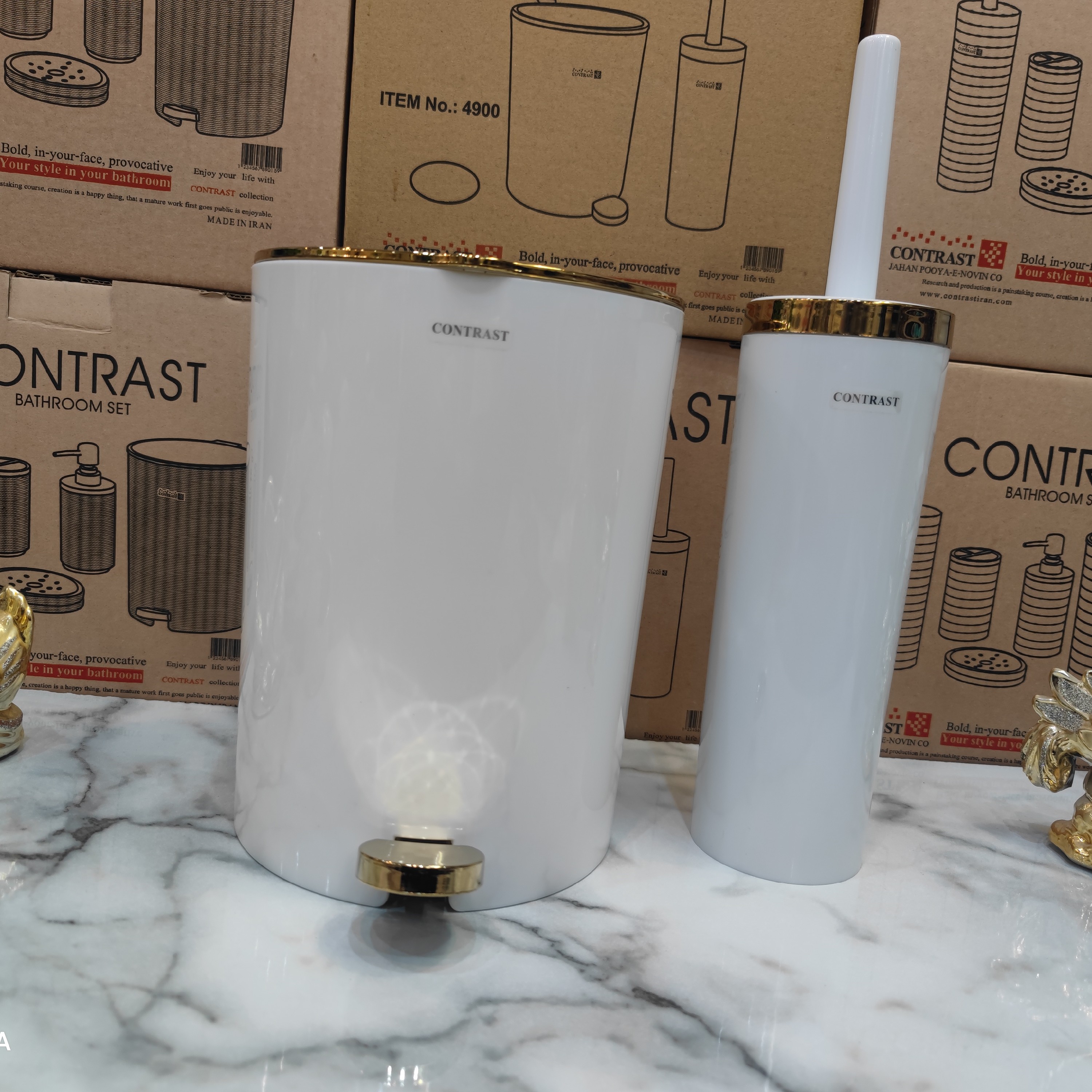 ست سرویس بهداشتی سطل و فرچه سفید طلایی کنتراست