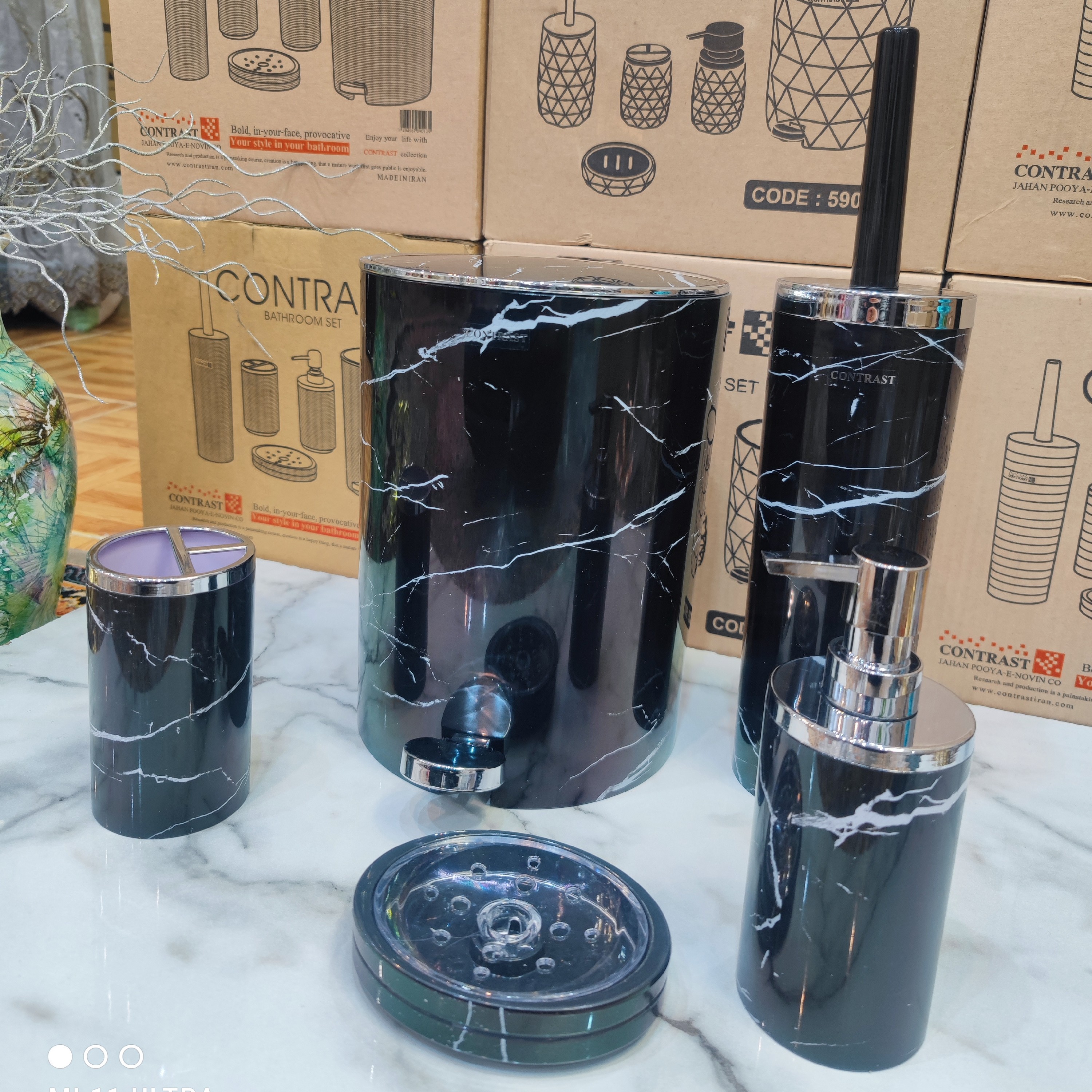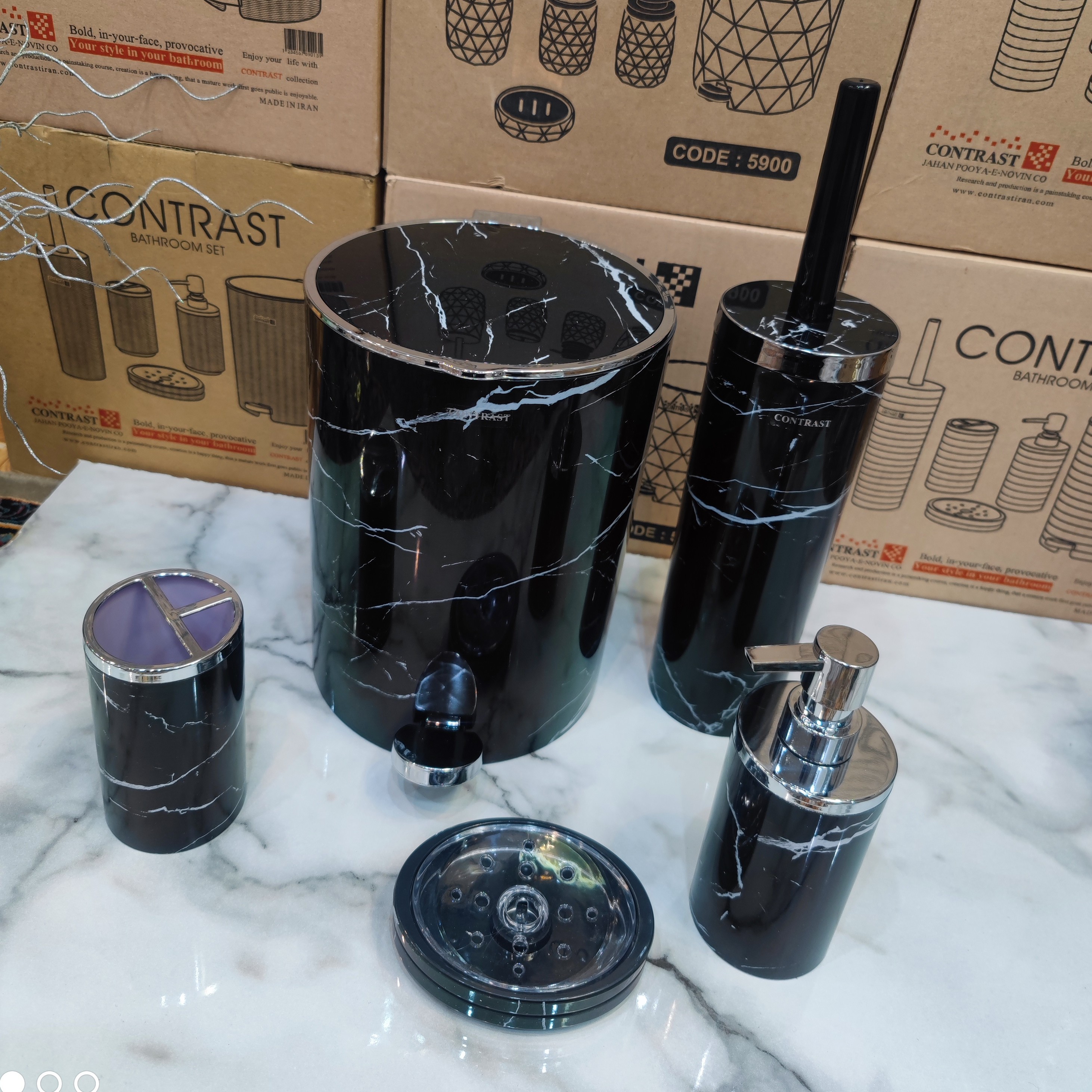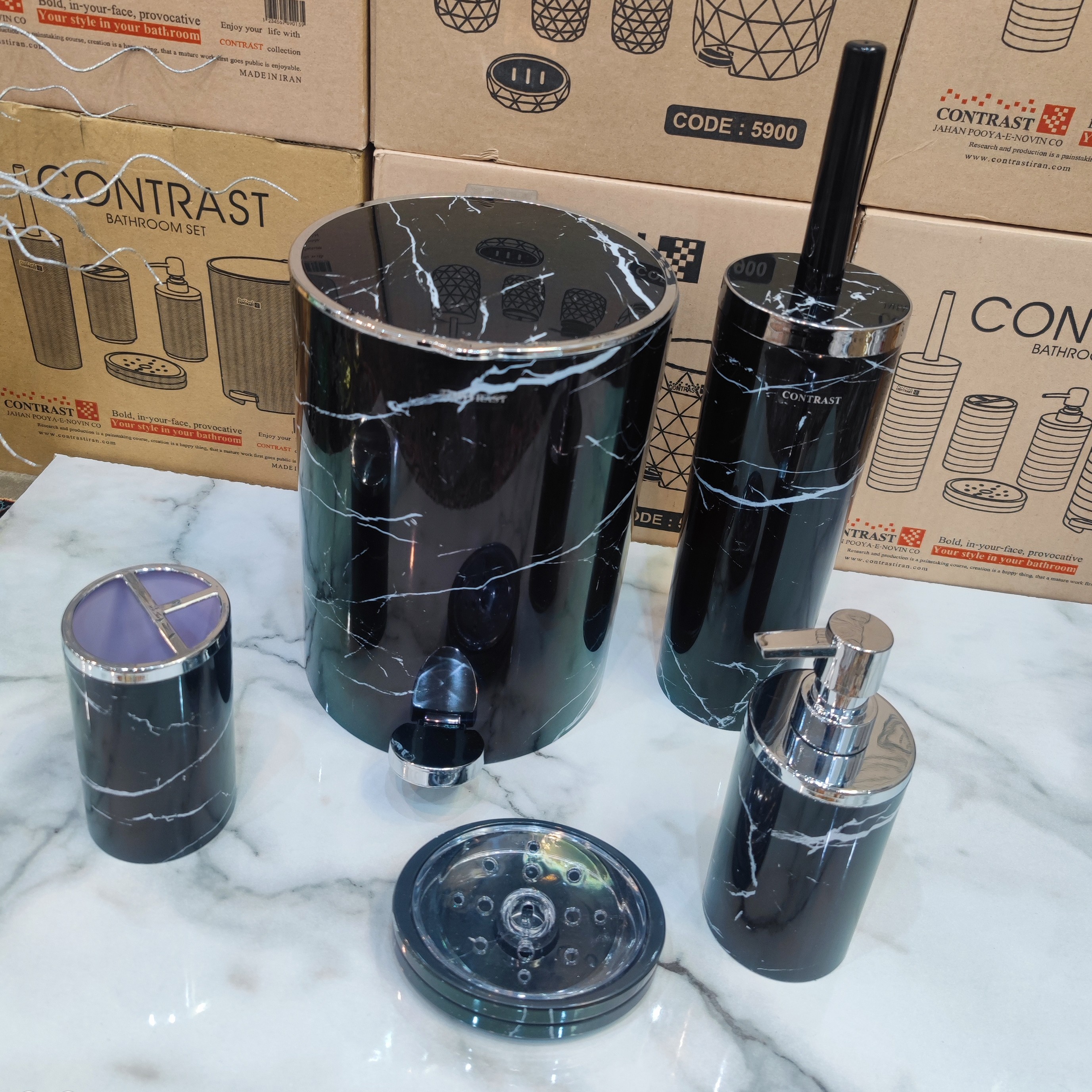 ست سرویس بهداشتی 5 پارچه طرح سنگ ماربل مشکی کروم برند کنتراست نو آکبند با ارسال سریع به تمام نقاط کشور برای خریداران مبلمونسرا مدل 266507