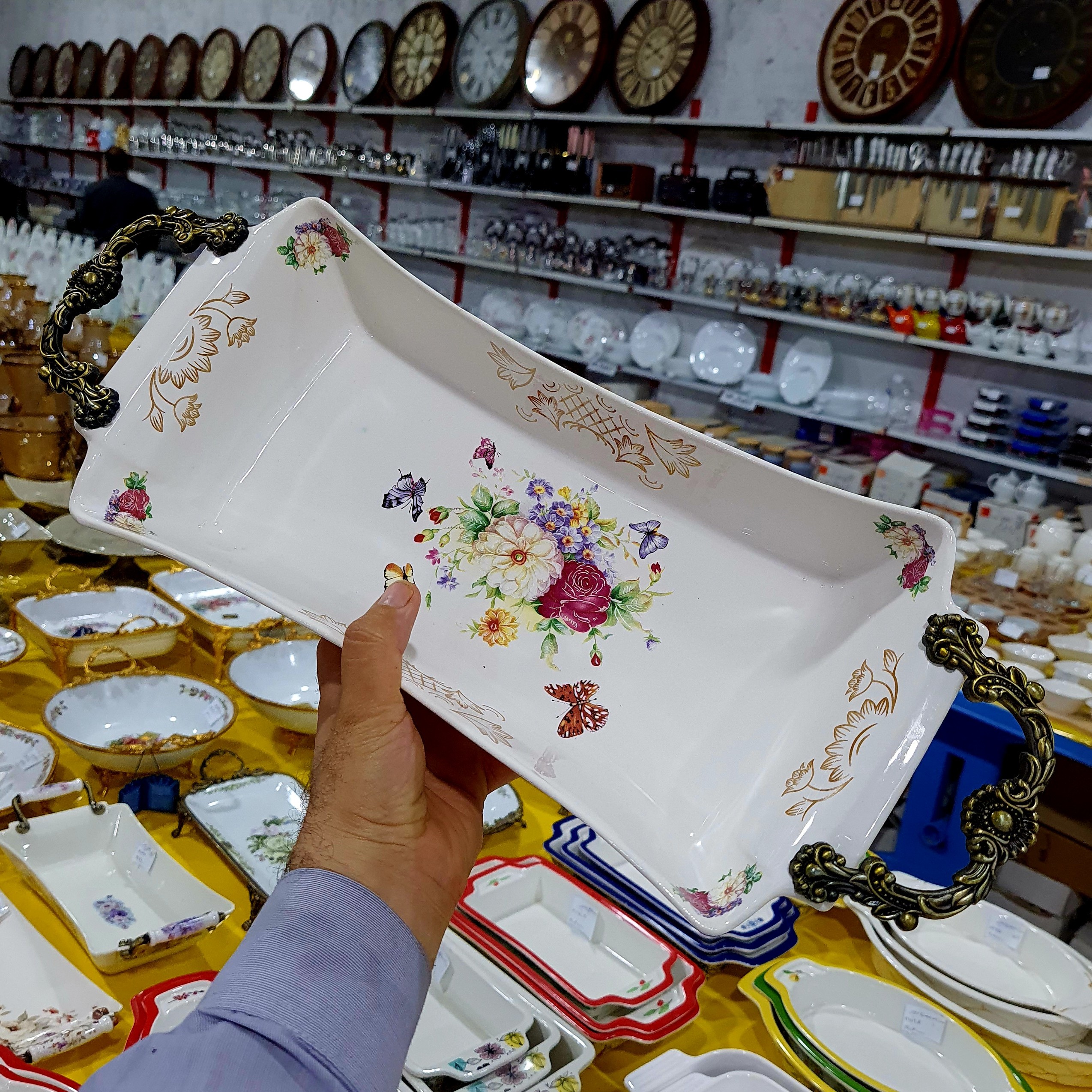 تابه مستطیل سرامیکی طرح پروانه مدل 301 مبلمونسرا مدل 291549