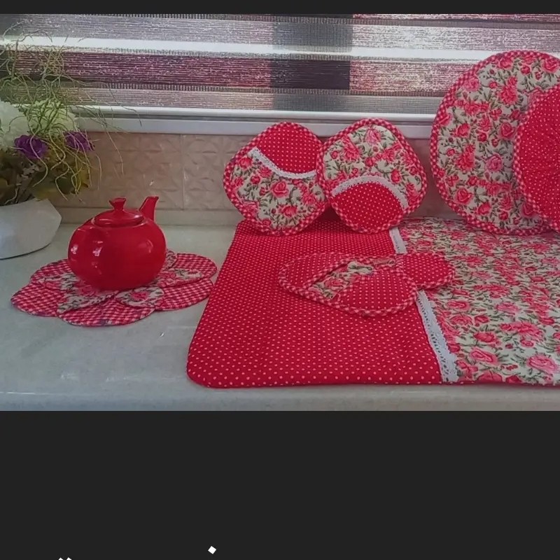 نیم ست آشپزخانه گل قرمز مبلمونسرا مدل 301983