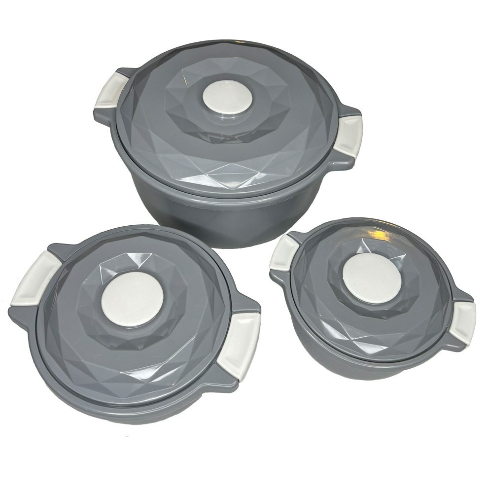 این ظروف شامل ۳عدد قابلمه در سایزهای مختلف است. ابعاد قابلمه بزرگ ۱۰×۲۶×۲۶ ،قابلمه متوسط ۹.۵×۲۰×۲۰ و قابلمه کوچک ۸×۱۶.۵×۱۶.۵ می باشد.