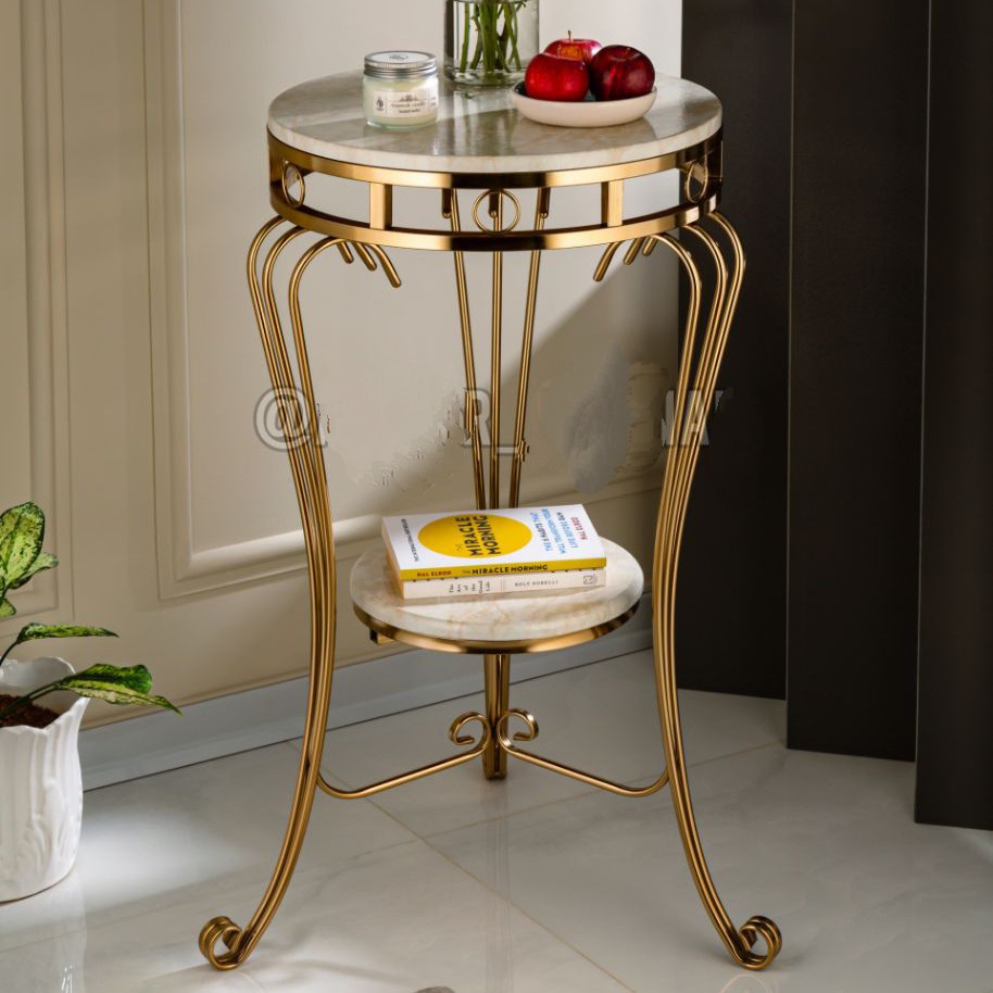 میز کنار سالنی سفید . مشکی . نقره ای استاتیک قطر 40 ارتفاع 80 مبلمونسرا مدل 224509