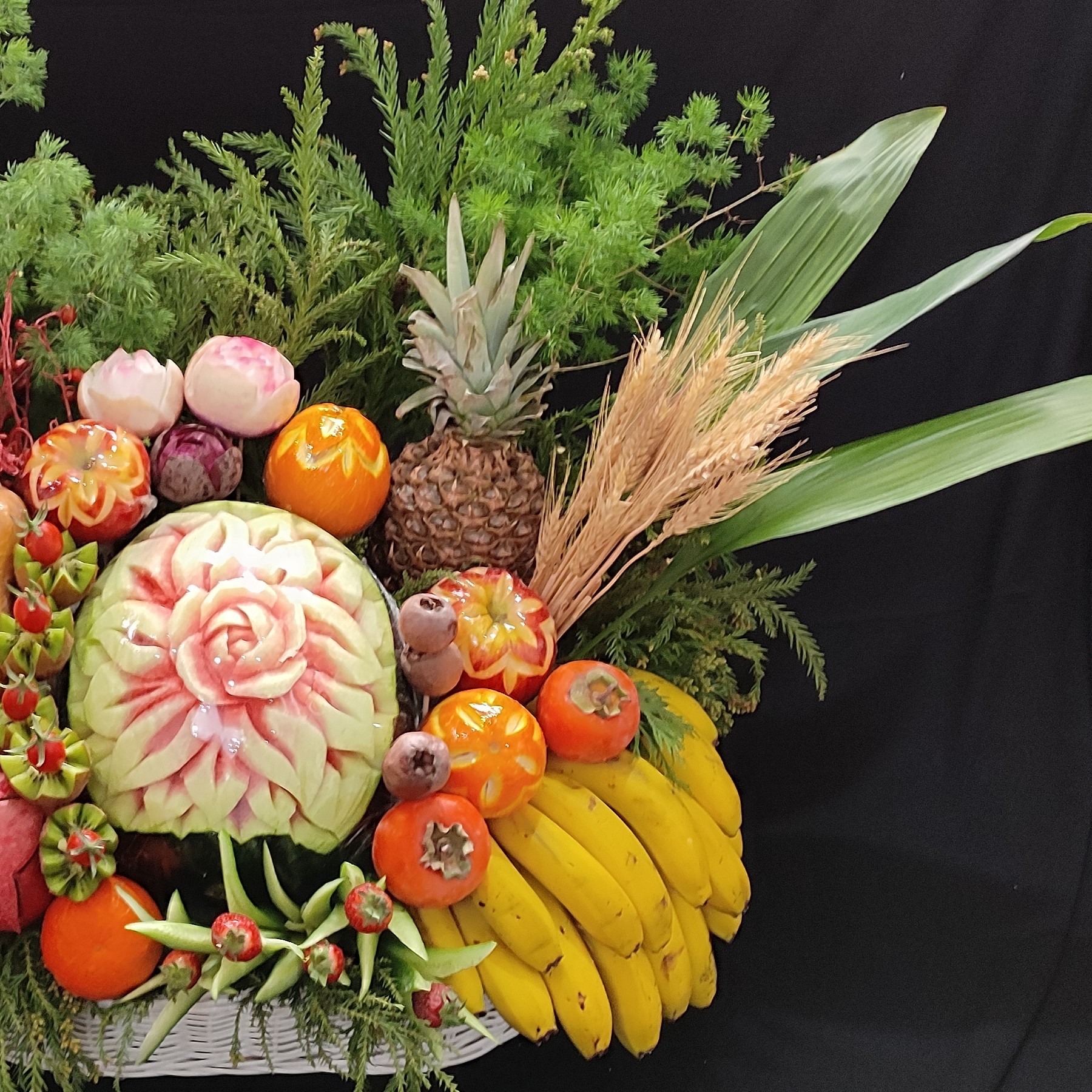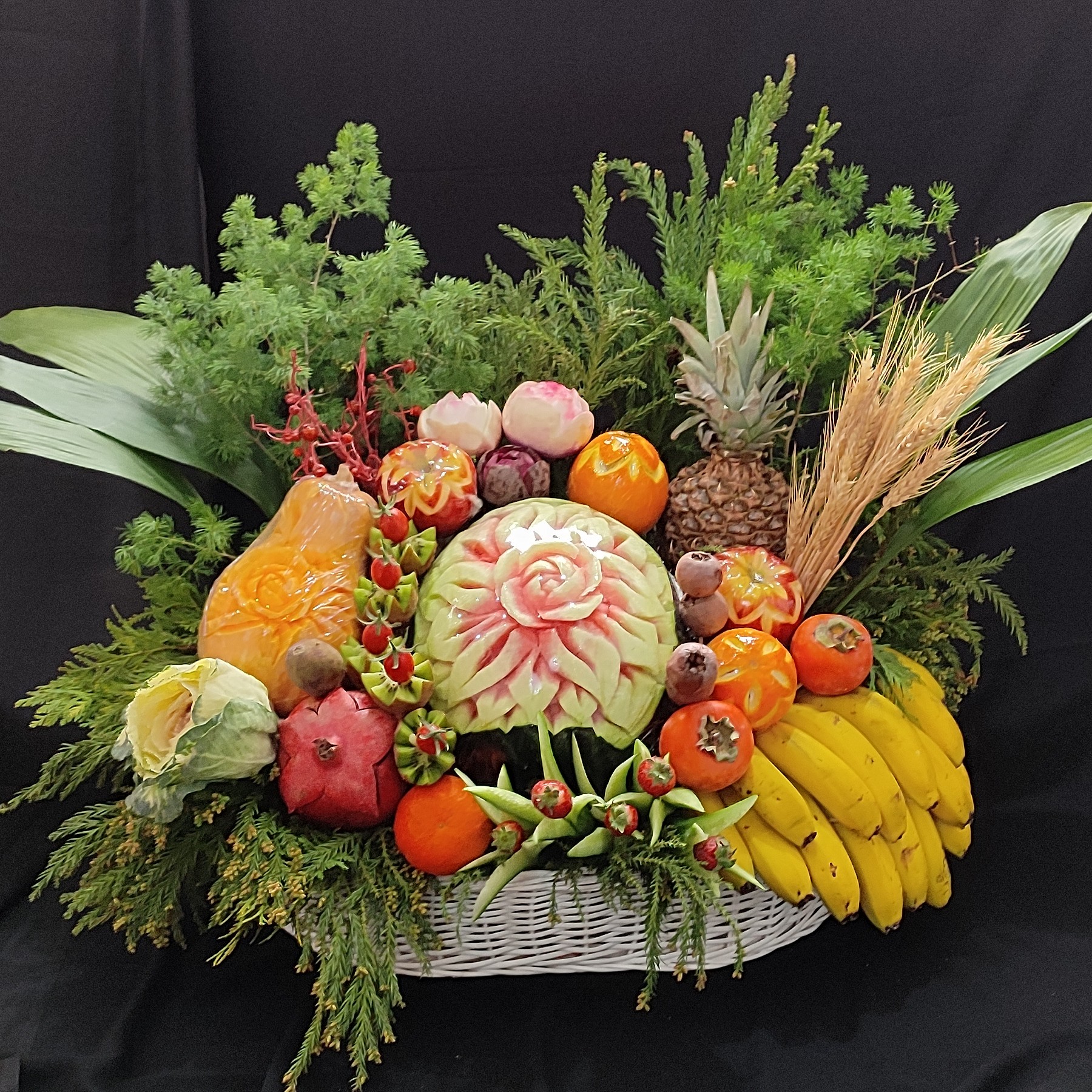سبد میوه آرایی شده بزرگ ،به همراه میوه های فصل و به همراه موز و آناناس و کدو حلوایی،لطفا قبل از ثبت سفارش در قسمت گفت و گو هماهنگ شود .قیمت داده شده به همراه میوه ها میباشد،چون سفارشات شما به صورت شخصی تهیه و آماده میشود تغییر جزئی در سفارش نهایی امری طبیعی است