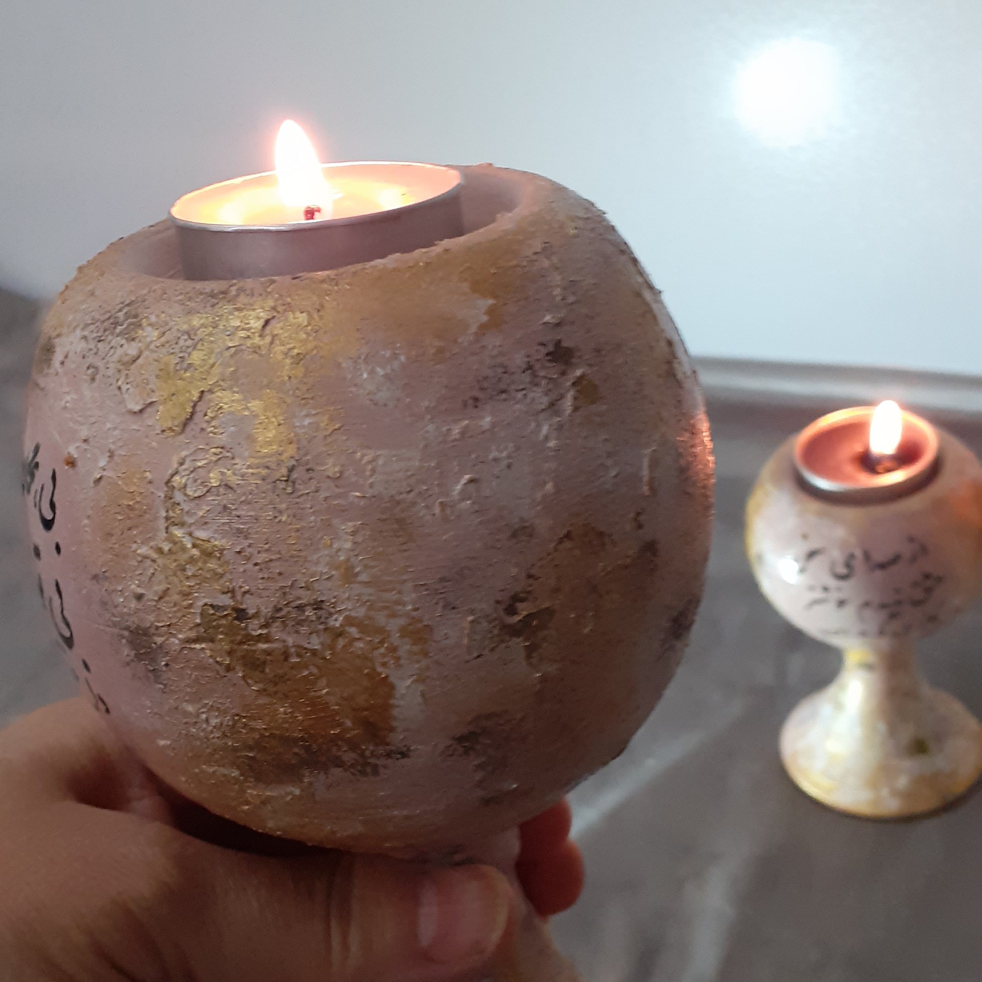 جاشمعی توپی پایه دار ست سه تایی پتینه شده و با ترنسفر اشعار تلفیق شده کاملا ضد اب وقابل شستشو مبلمونسرا مدل 281145