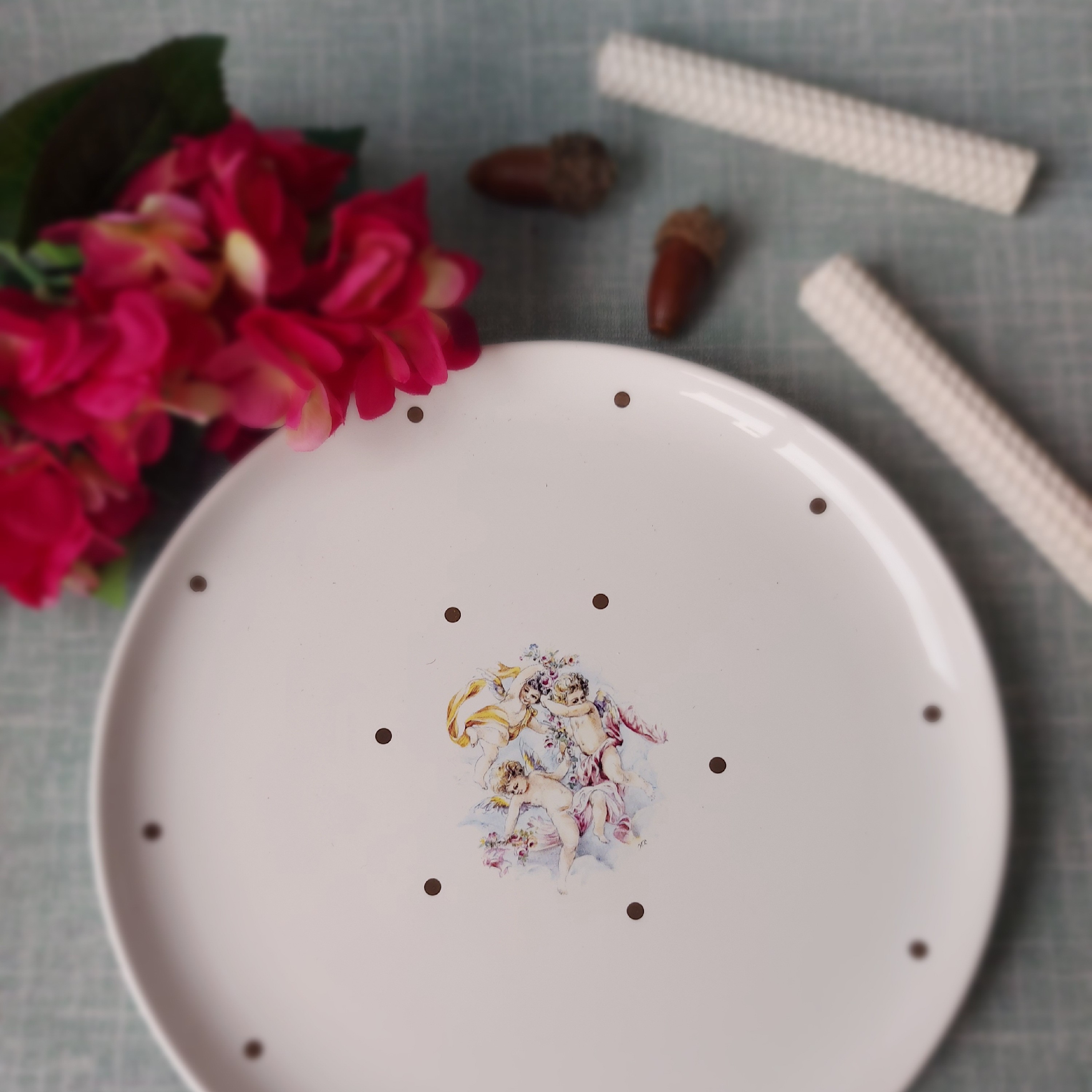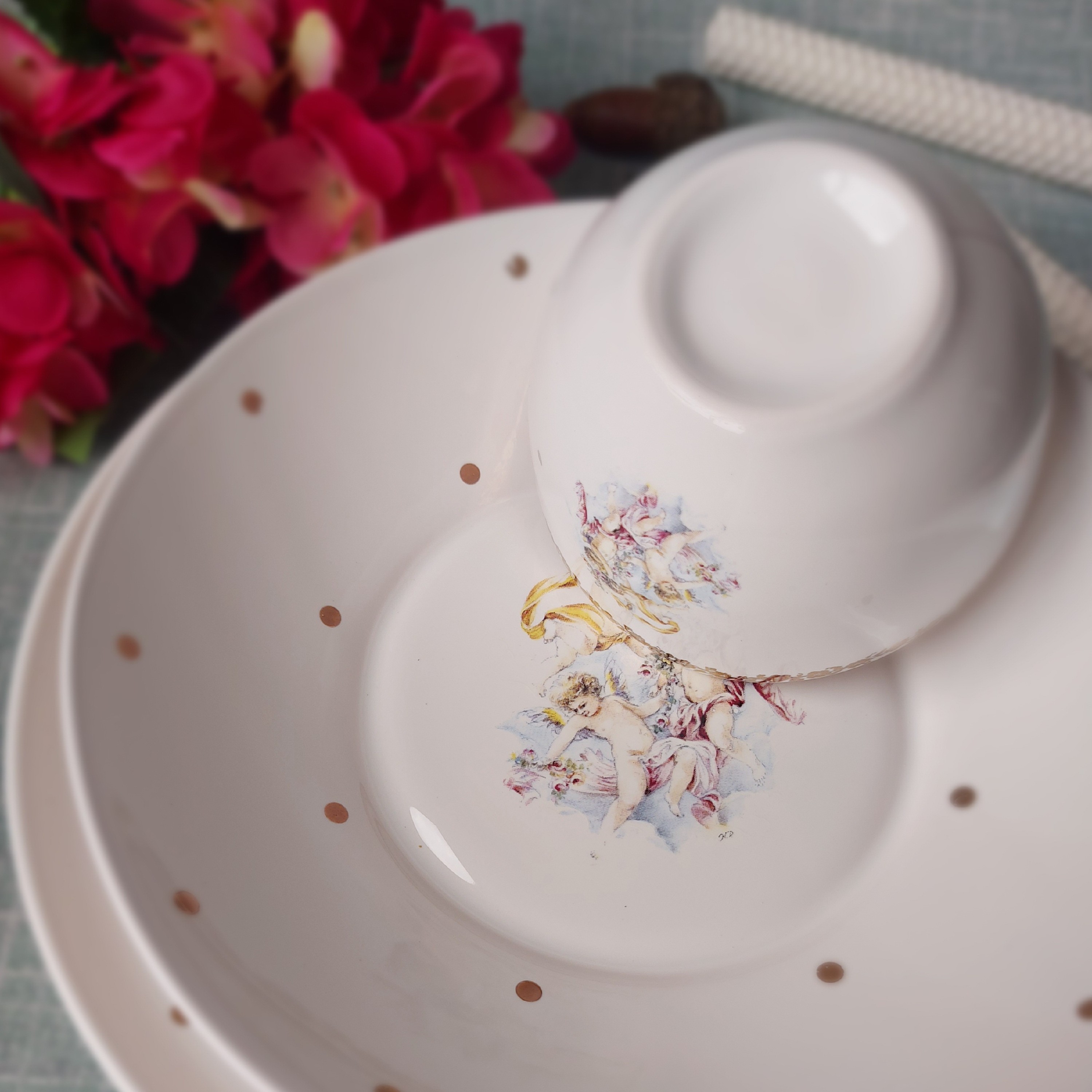 سرویس غذا خوری 34 پارچه سرامیکی طلاکوب طرح فرشته .. مبلمونسرا مدل 277100