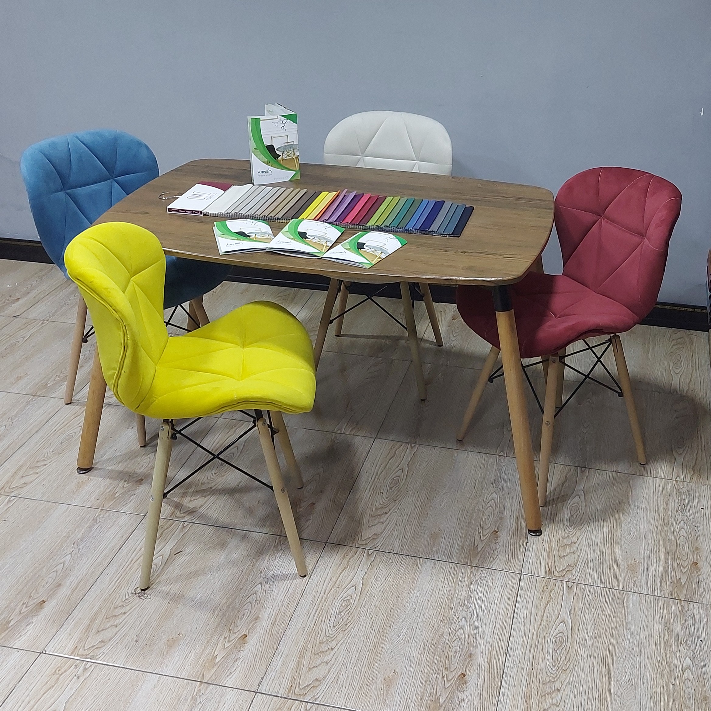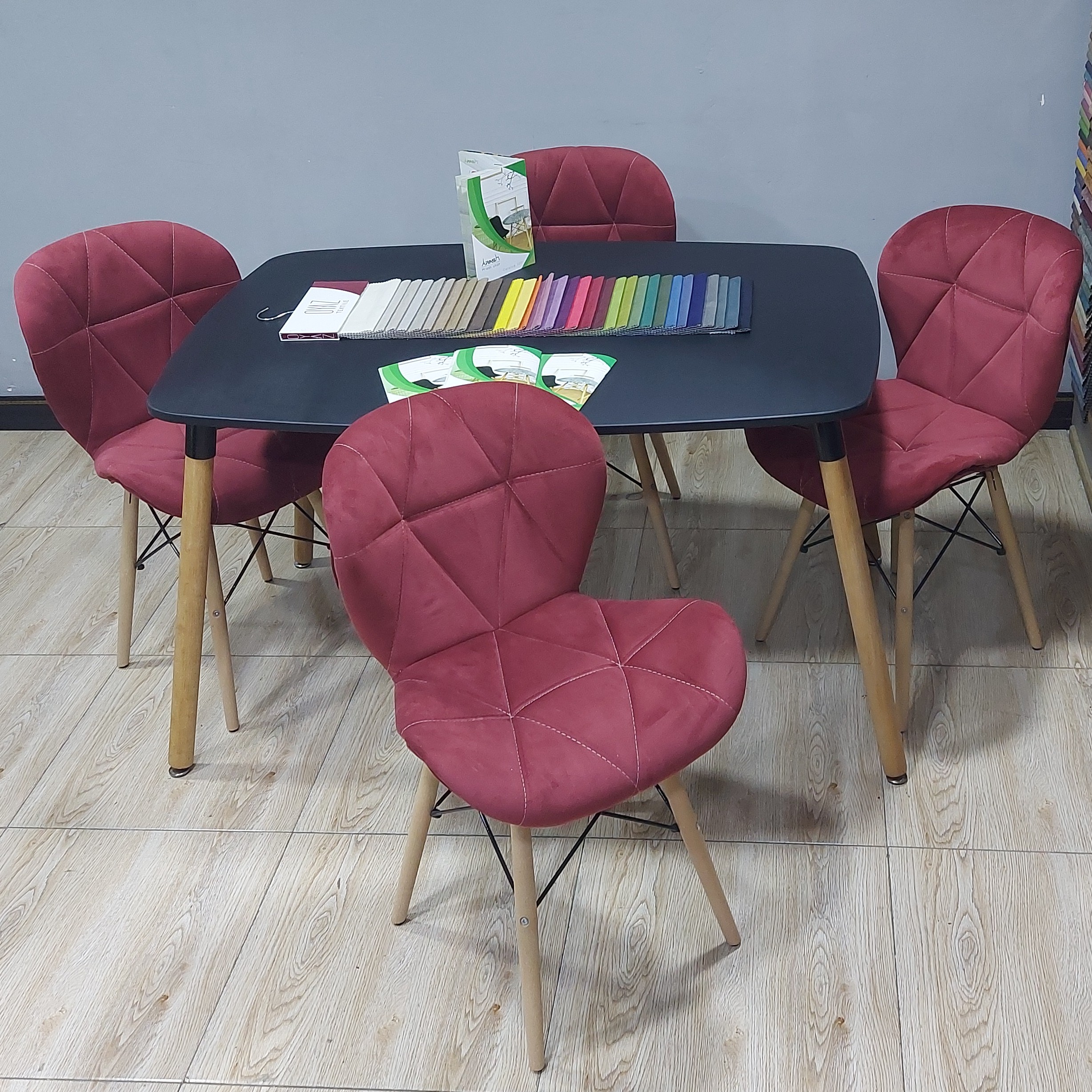 _پارچه مازراتی خارجی دارای 42 رنگ مختلف و زیبا _5 سانت اسفنج 20 کیلویی برای نشیمن _آرگونومیک و متناسب با قوس کمر _مقاوم و منعطف _تحمل وزن تا 150 کیلو _میزها از جنس mdf وکیوم شده ،سایز میز 4نفره بزرگ میباشد _رنگبندی میزها :سفید،مشکی ،طرح چوب _12 ماه گارانتی بی قیدو شرط _ارسال با بسته بندی مناسب توسط تیپاکس و ماهکس یا باربری