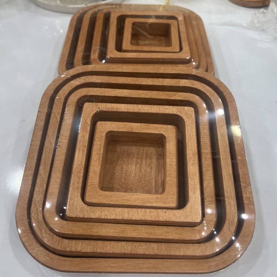 ست سرو پذیرایی ۵تکه چوبی مربع در سایزهای مختلف بسیار شیک و با کیفیت عالی