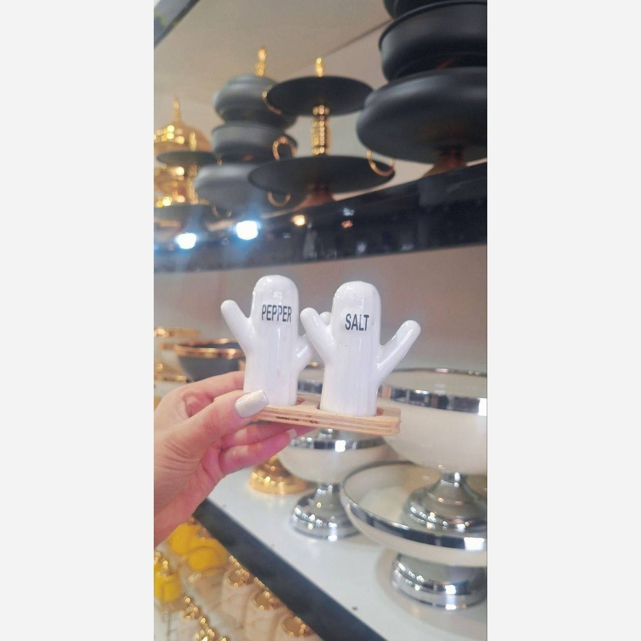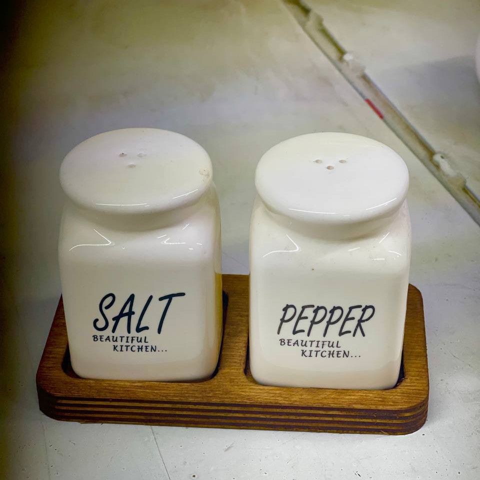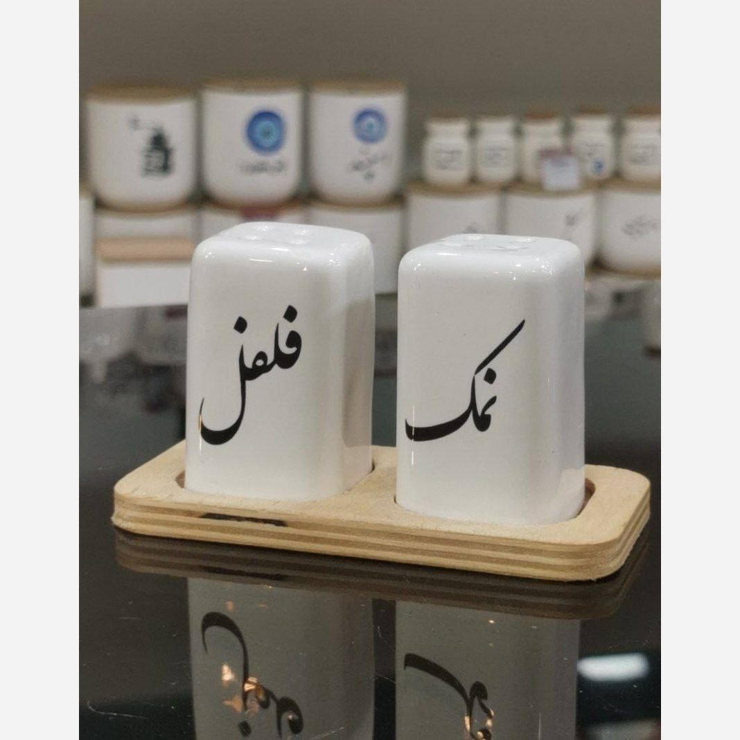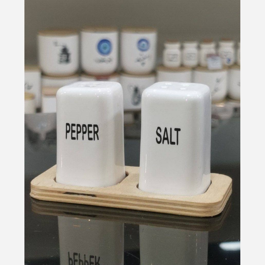 جای نمک و فلفل ست زیر چوبی طرح مربع و تخم مرغی سرامیکی رایان با بهترین کیفیت