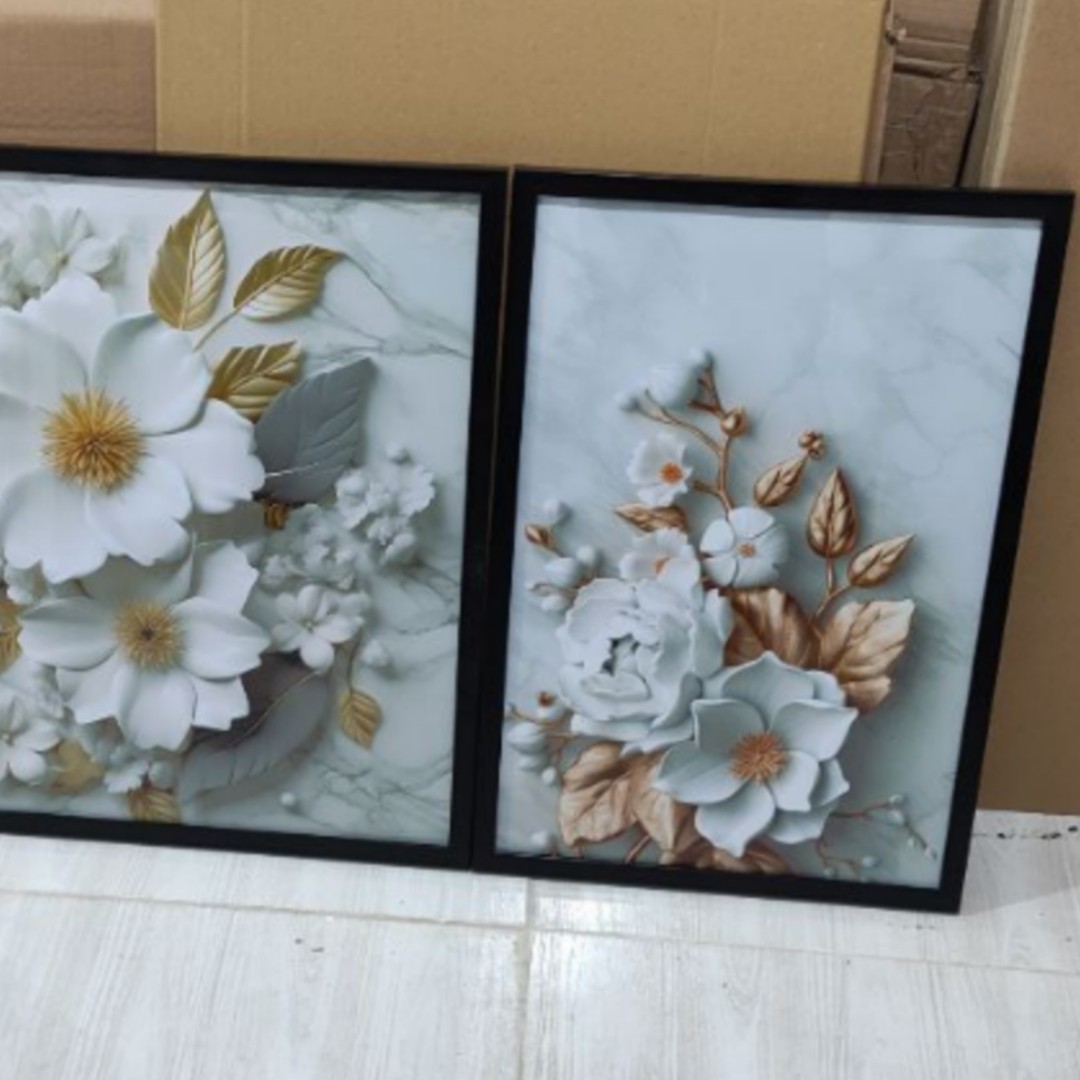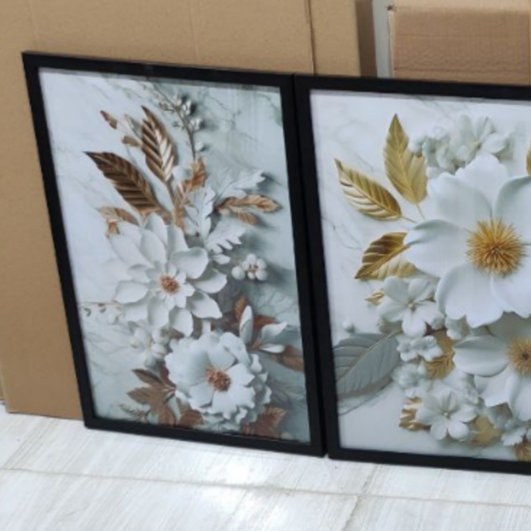 تابلو دکوراتیو طرح سه بعدی گل سفید و طلایی مبلمونسرا مدل 268061