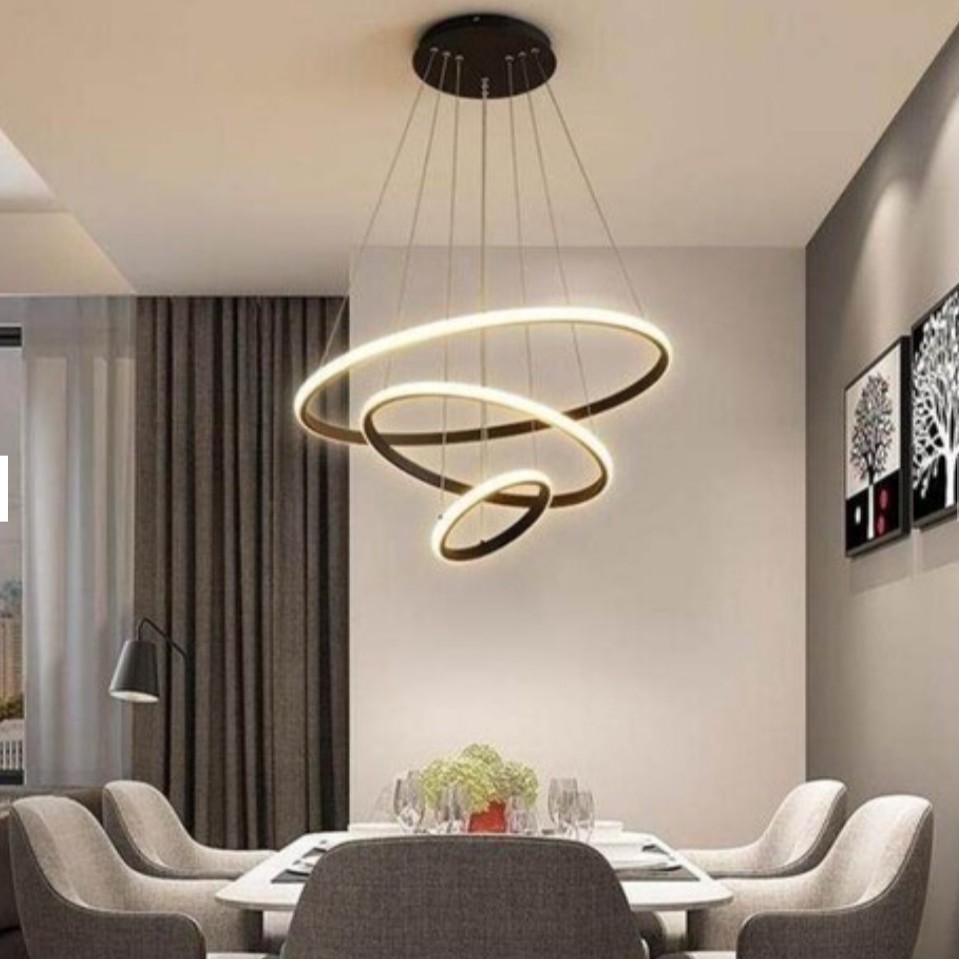 لوستر مدرن 3 حلقه چهار حالت نوری دارای ریموت کنترل دیمر دار و اپ موبایل مبلمونسرا مدل 244287