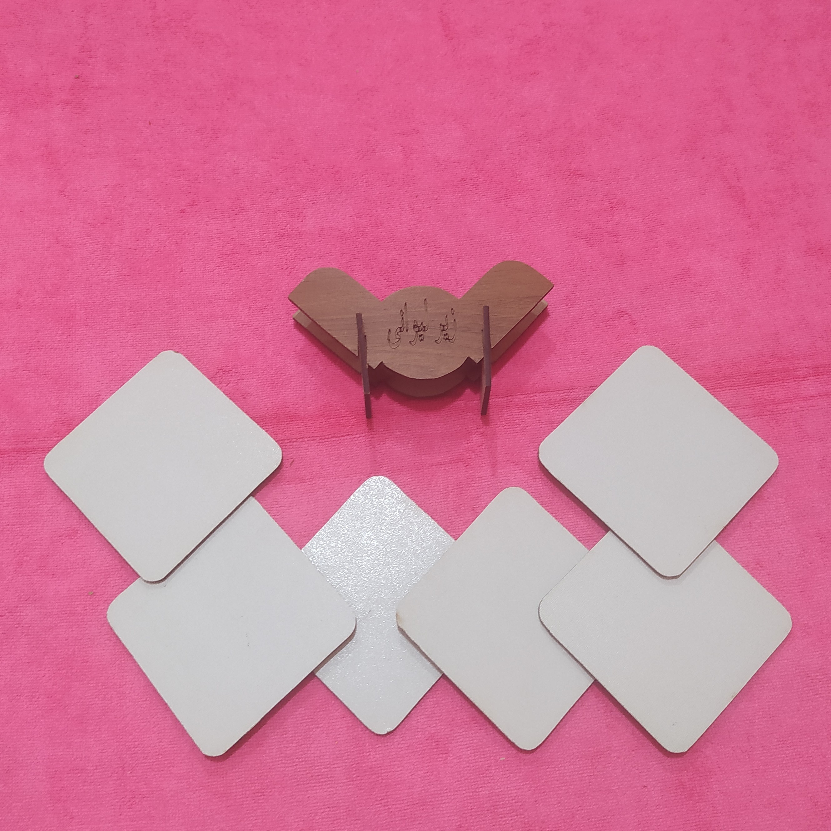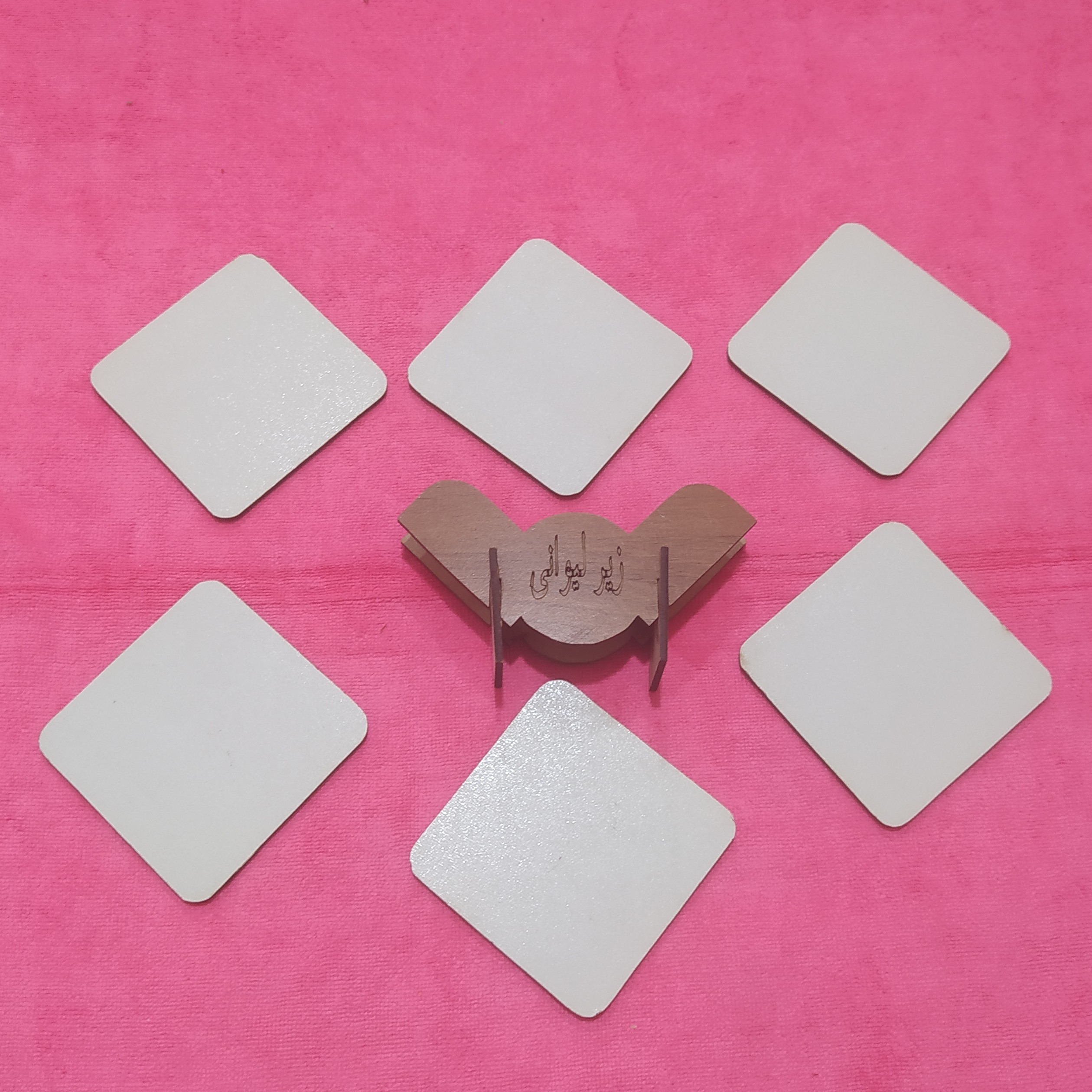 زیرلیوانی و ماگی مربع 6 تایی چوبی جعبه دار مبلمونسرا مدل 299075