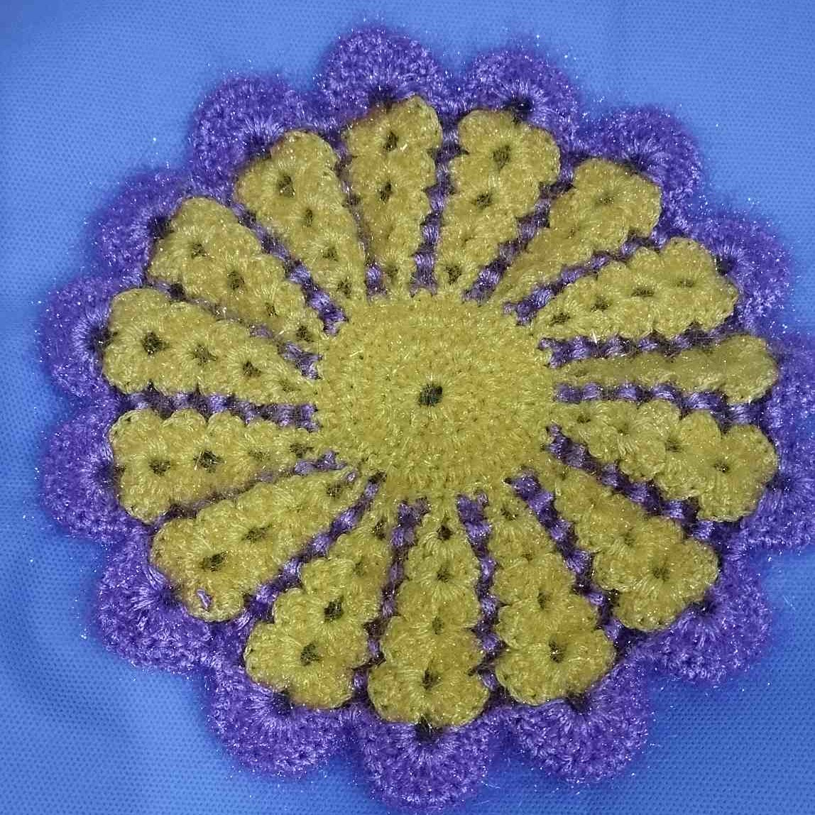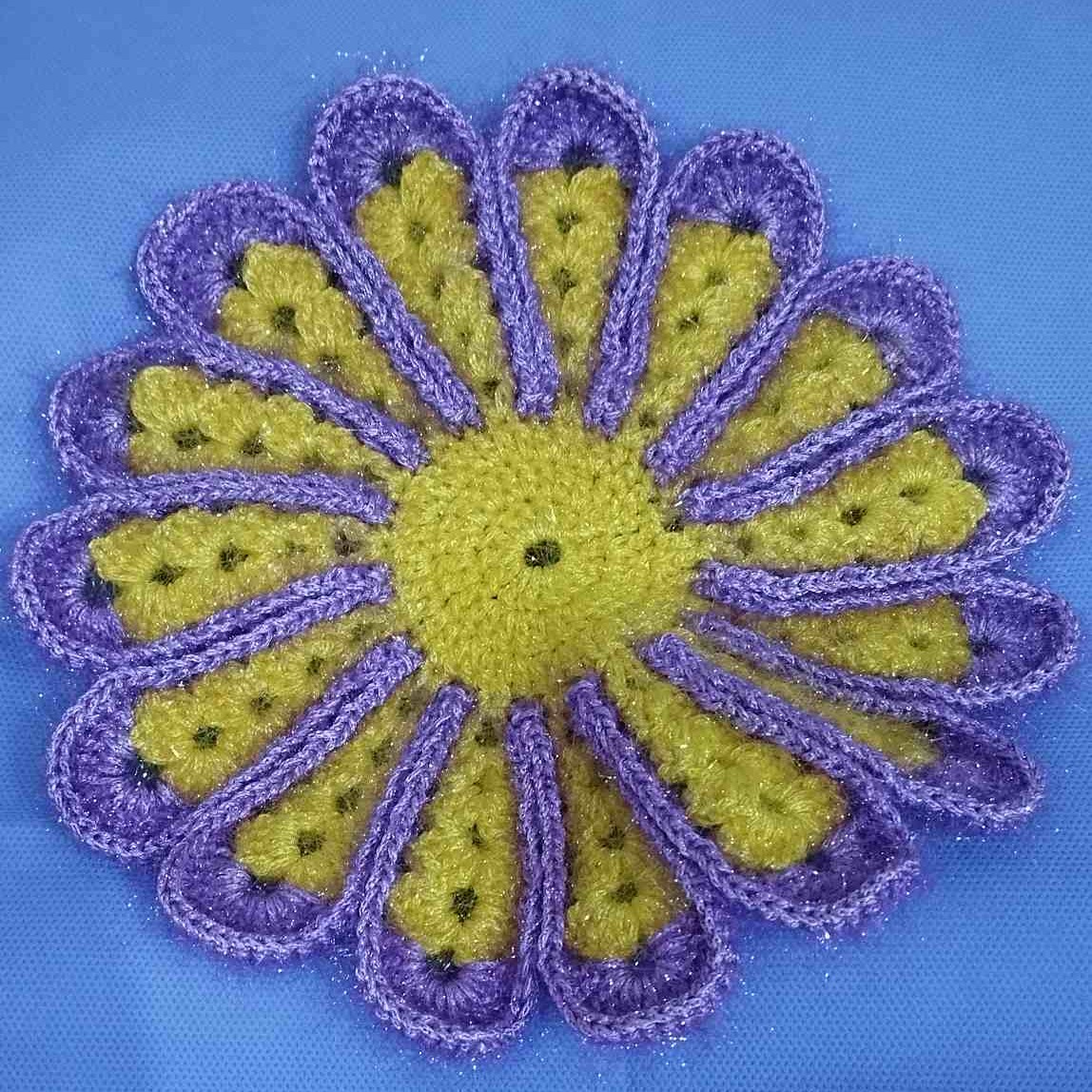 زیربشقابی بسیار زیبا است،در دو رنگ بافته شده با قلاب بافتم،بعنوان رومیزی هم استفاده میشه،چون کمی بزرگه،از رنگهای شاد استفاده شده.
