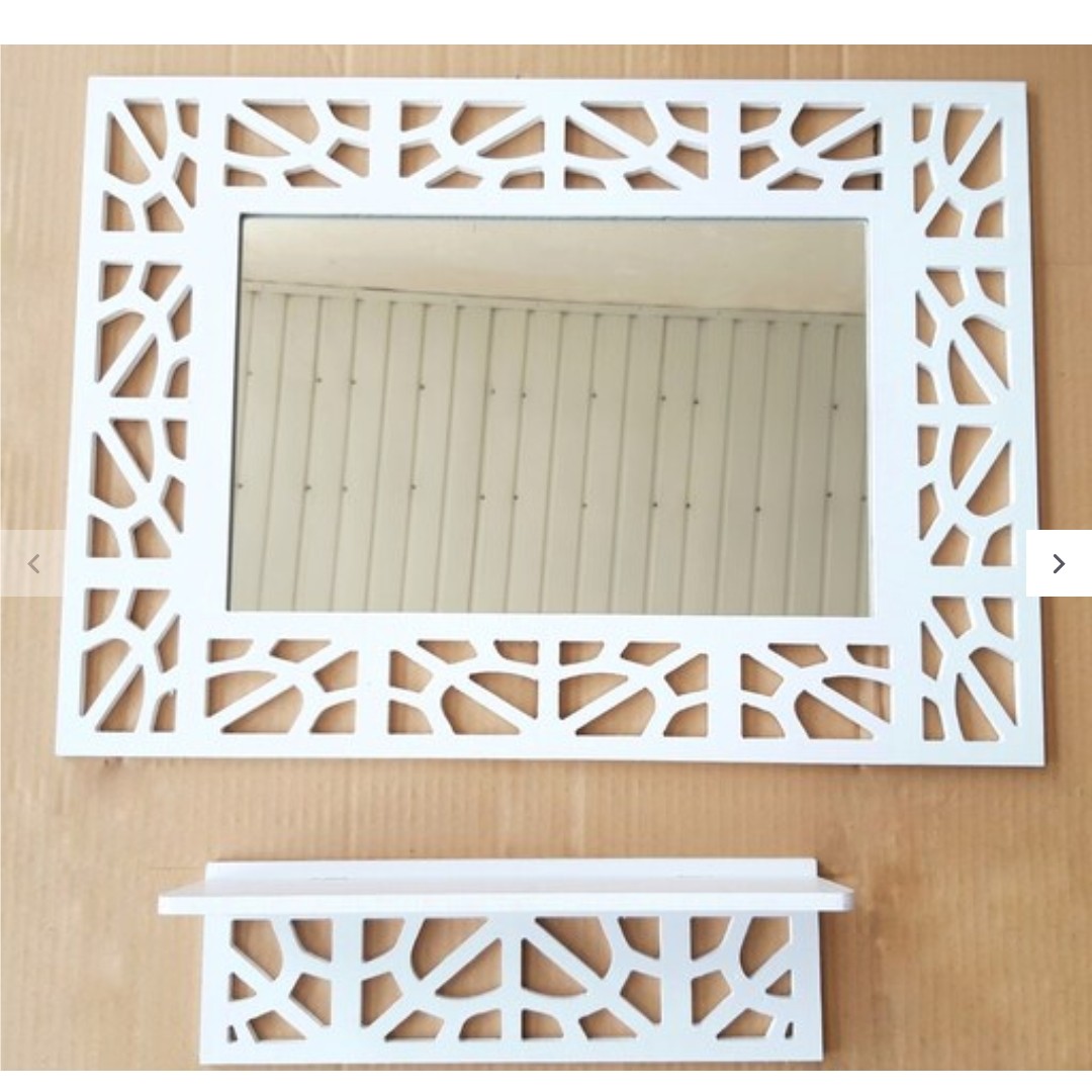 آینه مستطیل سفید با کنسول بزرگ سایز 40 در 60 سانت نوع جنس pvc ضخامت ورق 8 میل نوع برش t i