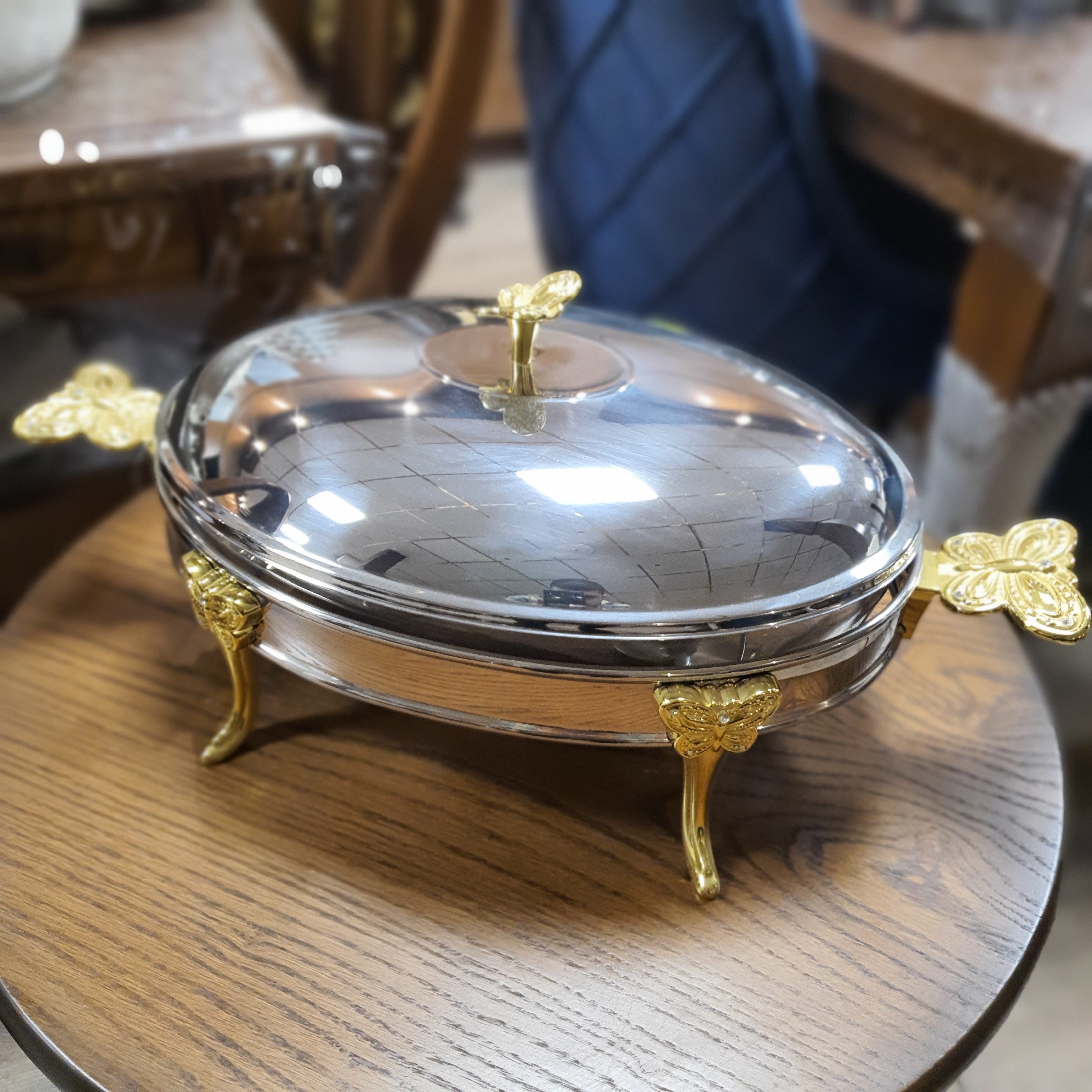 ست سوفله خوری 3 سایز بیضی استیل طلایی هوم لوکس مدل پروانه مبلمونسرا مدل 289444