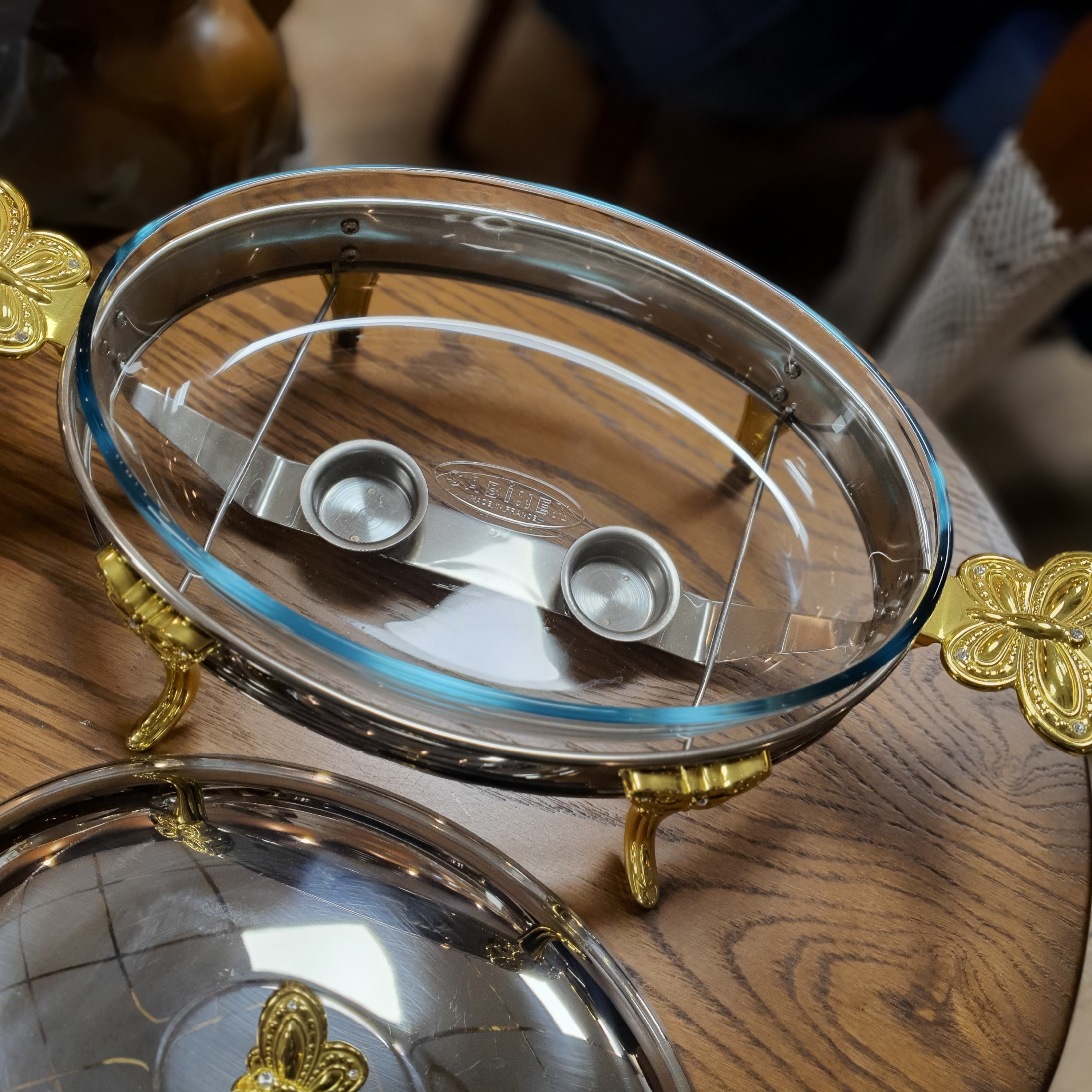 ست سوفله خوری بیضی ۳ سایز استیل طلایی مدل پروانه برند home luxe شیشه پیرکس sabinex پیرکس قابل استفاده در فر و ماکروفر و ماشین ظرف شوی حجم سوفله ها: کوچک ۱.۵ لیتر متوسط ۲ لیتر بزرگ ۳ لیتر تخفیف استثنائی رنگ ثابت استیل ضد زنگ زیر سوفله ها جای شمع وارمر کوچک دارد.برای گرم نگه داشتن غذای شما. شیک و زیبا