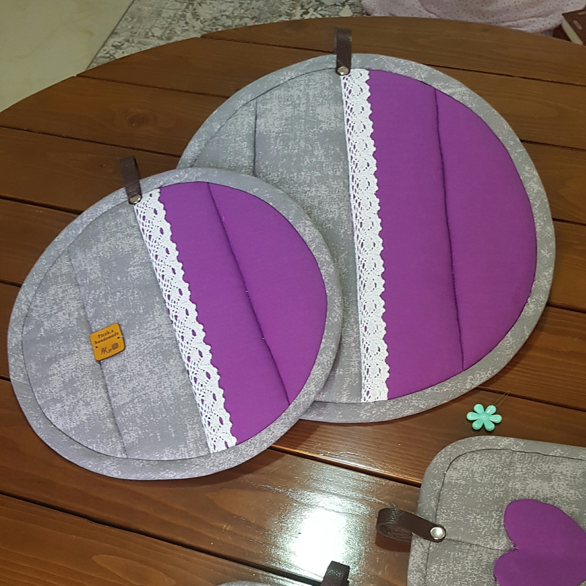 دمکنی کاملا کاربردی دورو دور اریب ترکیب طوسی و بنفش کیفیت پارچه ترک دستگیره پانچ چرمی
