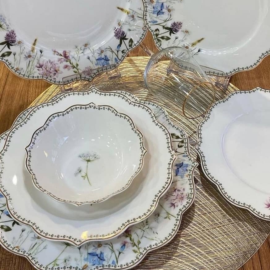 ست غذاخوری پرسلن برند pachi ترکیه 🇹🇷 بسیار شیک و ظریف کیفیت عالی 6 نفره هر ست شامل : 6 عدد بشقاب تخت 6 عدد بشقاب گود 6 عدد پیشدستی 6 عدد پیاله