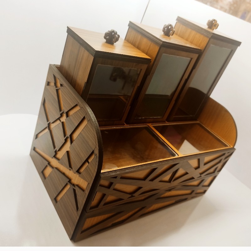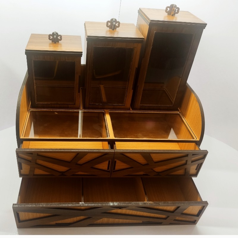 این نوع از محصول دارای دو کشو و همین طور سه تا جا ادویه ای هست تمام کار با چوب ام دی اف 3 میل می باشد+ پلکسی شفاف 3 میل
