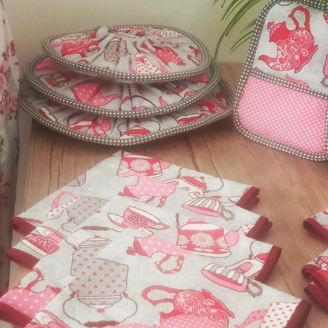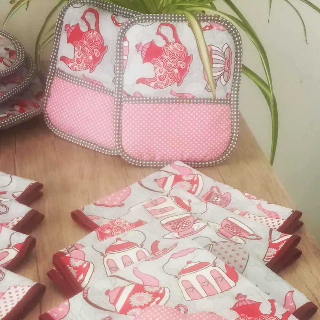 شامل سه عدد دمکنی وپیشبند ساده ودستگیره طرح قلب و آبگیر کوچک ودستکش فرو کیسه نان