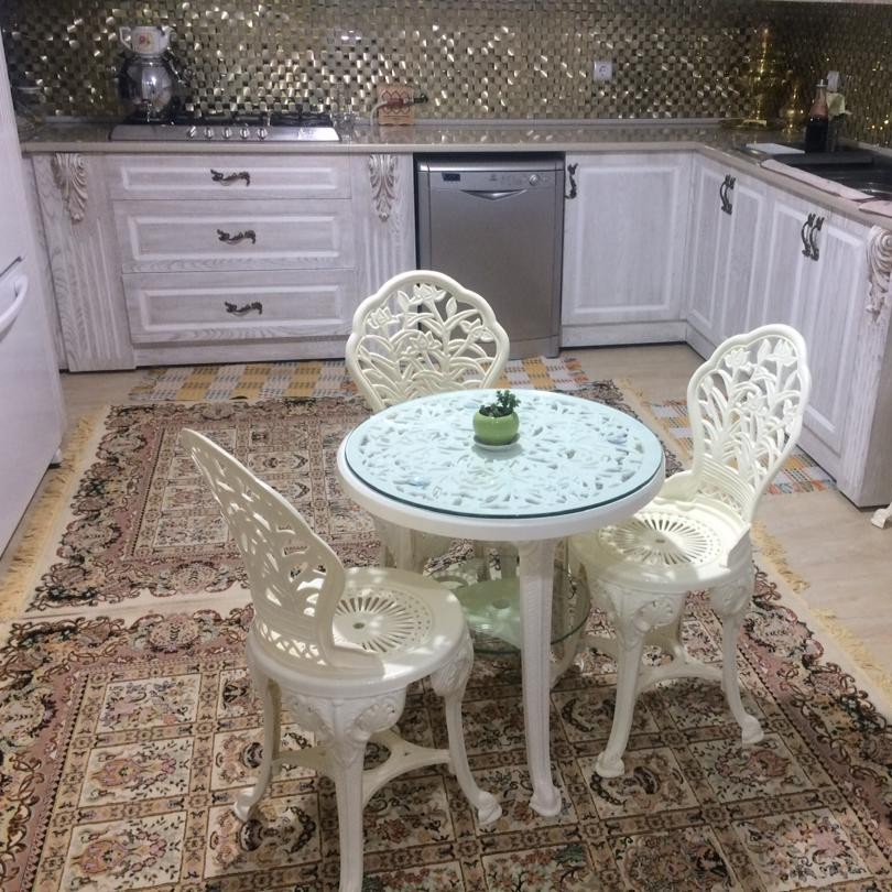 میز وصندلی ناهارخوری سه نفره دررنگ کرمی وسفید مناسب برای اشپزخانه تراس باغ ویلا ویتامین سرا کافی شاپ و...