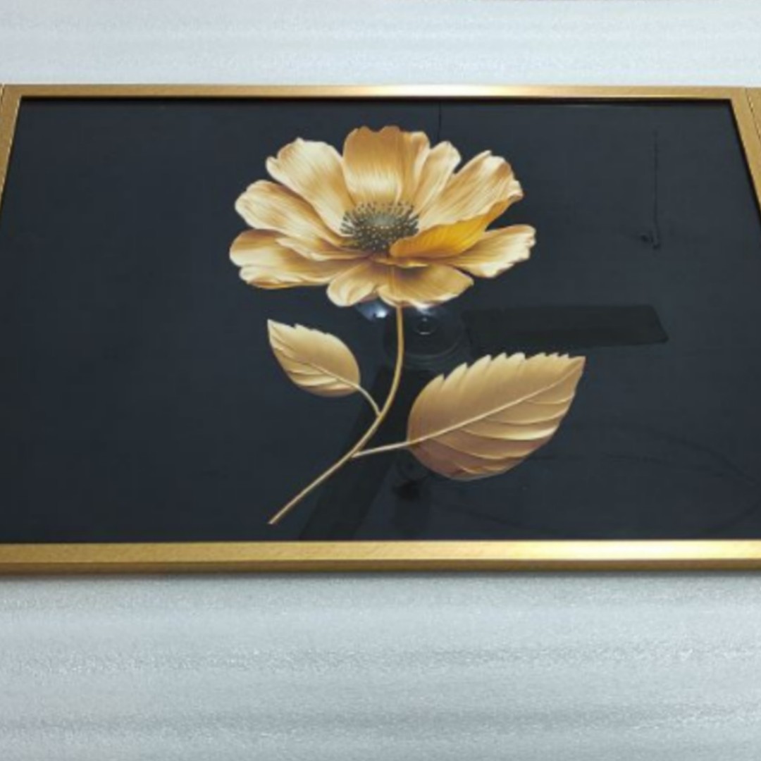 تابلو دکوراتیو گلهای طلایی با زمینه سفید ومشکی سه تکه مبلمونسرا مدل 267368