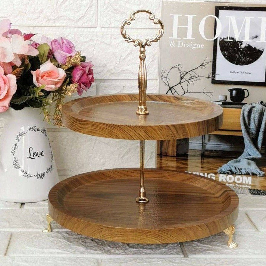 استند شیرینی خوری دوطبقه چوبی روکش وکیوم ضدآب باکیفیت سینی هم هم جود میباشد