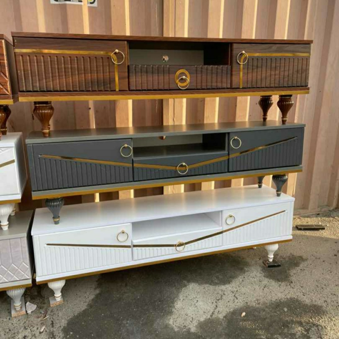 میز تلویزیون مدل هفتی 140 سانت در 36 مناسب تلویزیون از 32 اینچ تا 55 اینچ ابعاد بزرگتر هم موجود است دارای رنگبندی سفید . مشکی. قهوه ای آنتیک. قهوه ای کلیاف . کاج استخوانی و کرم میباشد تولیدات ما میز تلویزیون. کنسول . جاکفشی. جلو مبلی میباشد ارسال رایگان در تهران دارای مقاومت بالا دارای ریل آهنی و دستگیره فلزی کیفیت اعتبار ماست نه قیمت کافیه یک بار امتحان کنید همه محصولات دارای ست کنسول و جاکفشی میباشد