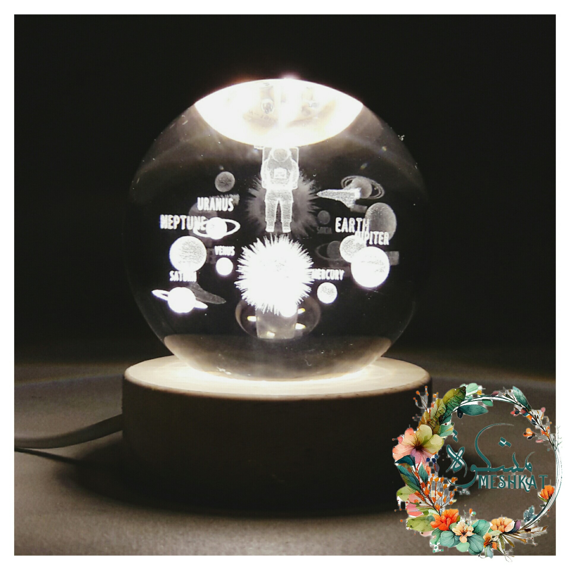 گوی کریستالی سه بعدی چراغ خواب طرح فضانورد و منظومه شمسی مبلمونسرا مدل 233359
