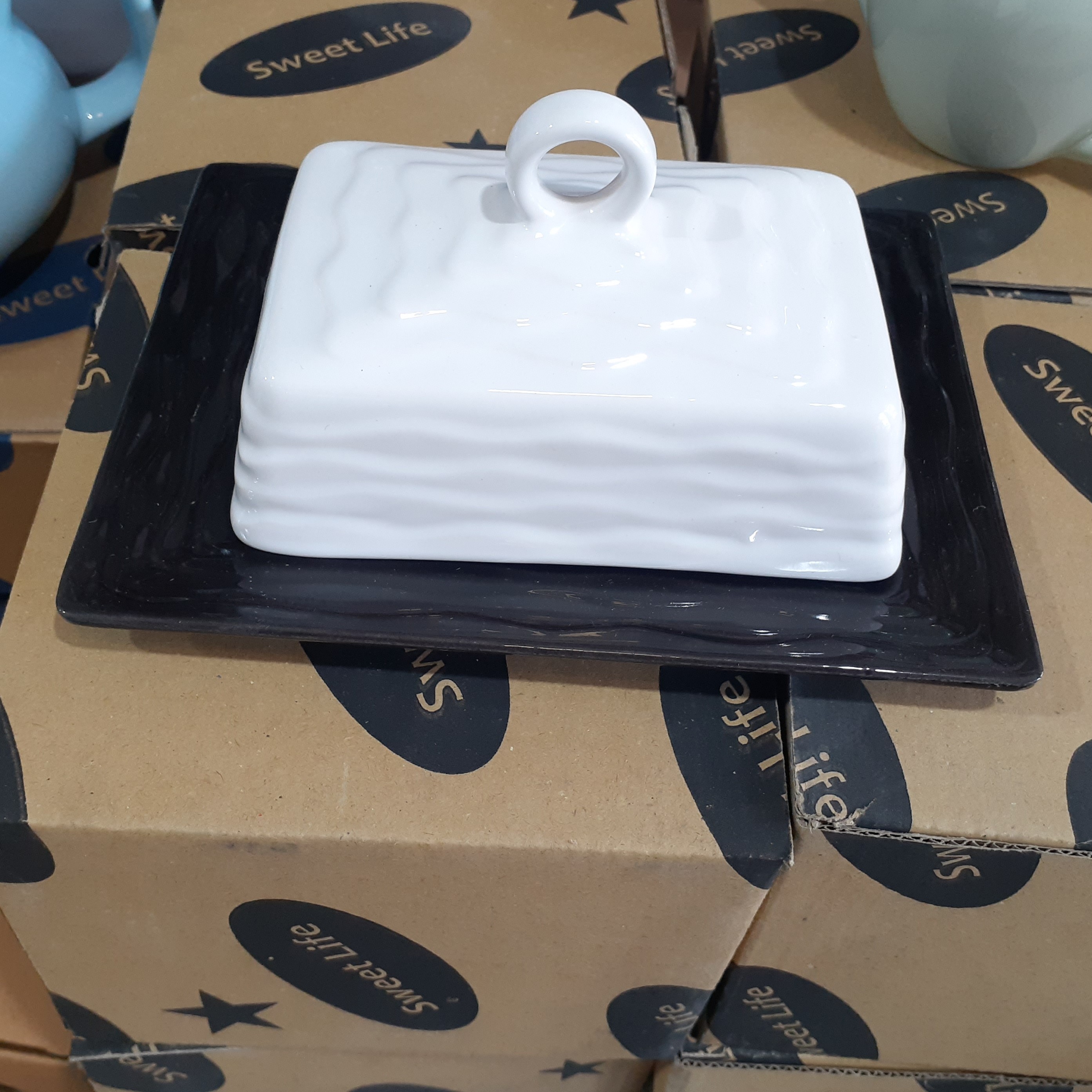 ظرف کره یا پنیر خوری سرامیکی رنگی در چند ترکیب رنگ مبلمونسرا مدل 291321