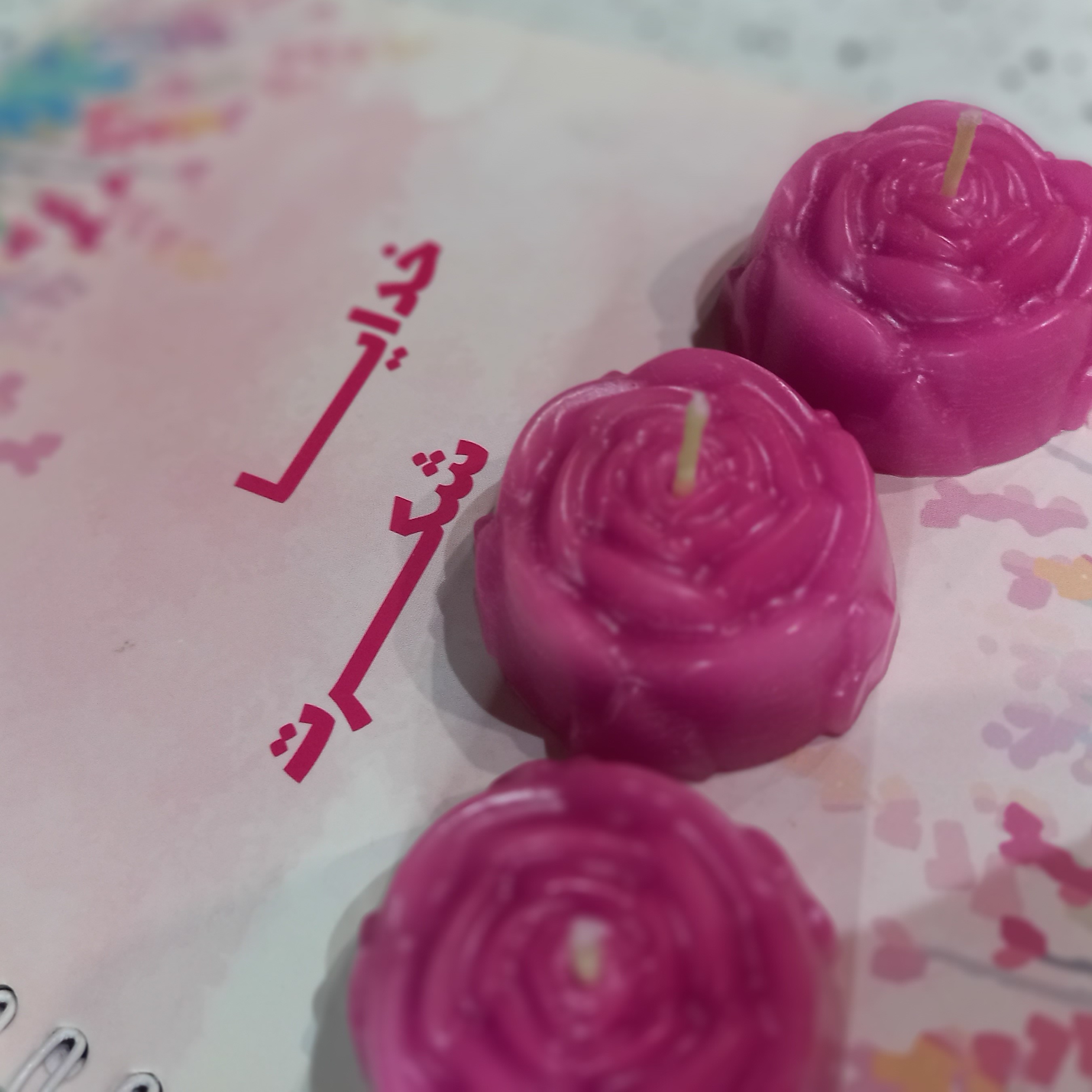 یا رزّاق شمع طرح گل رز . قیمت هر یک عدد ۷تومان . رنگ های دلخواه شما . برای روی آب هم کاربرد دارن