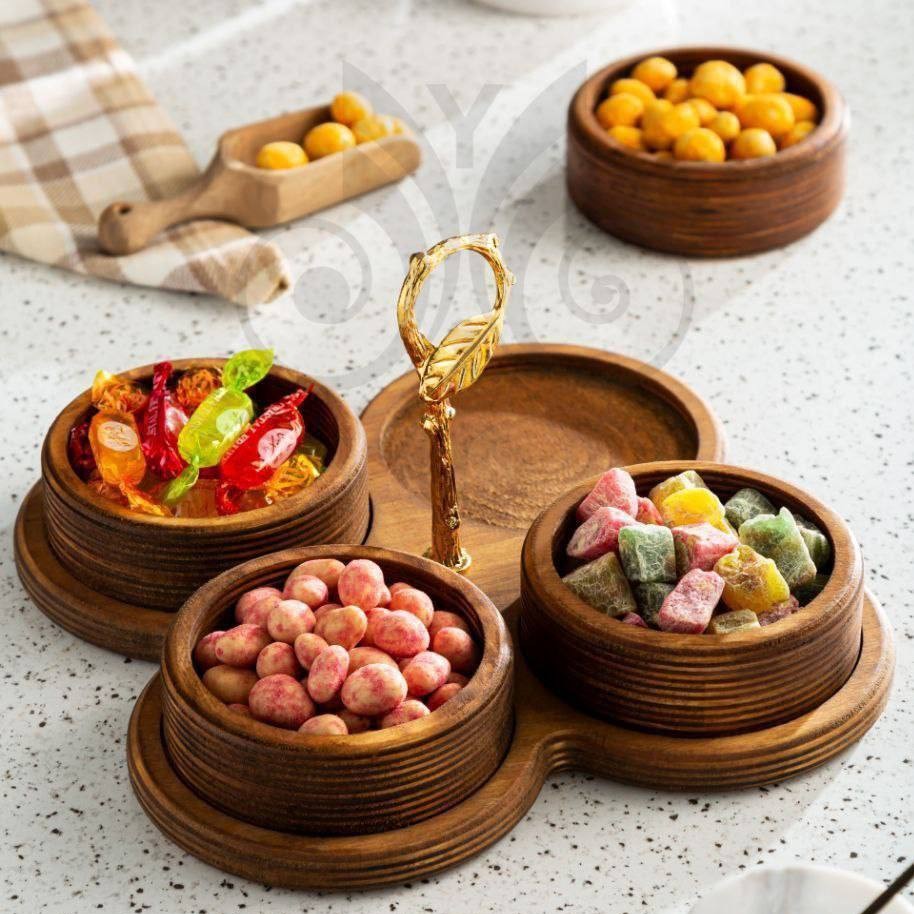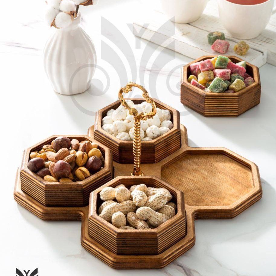 اردو خوری ۴ خونه چوبی دسته دار در مدل های گرد، شش ضلعی ، مربع قابل شست و شو