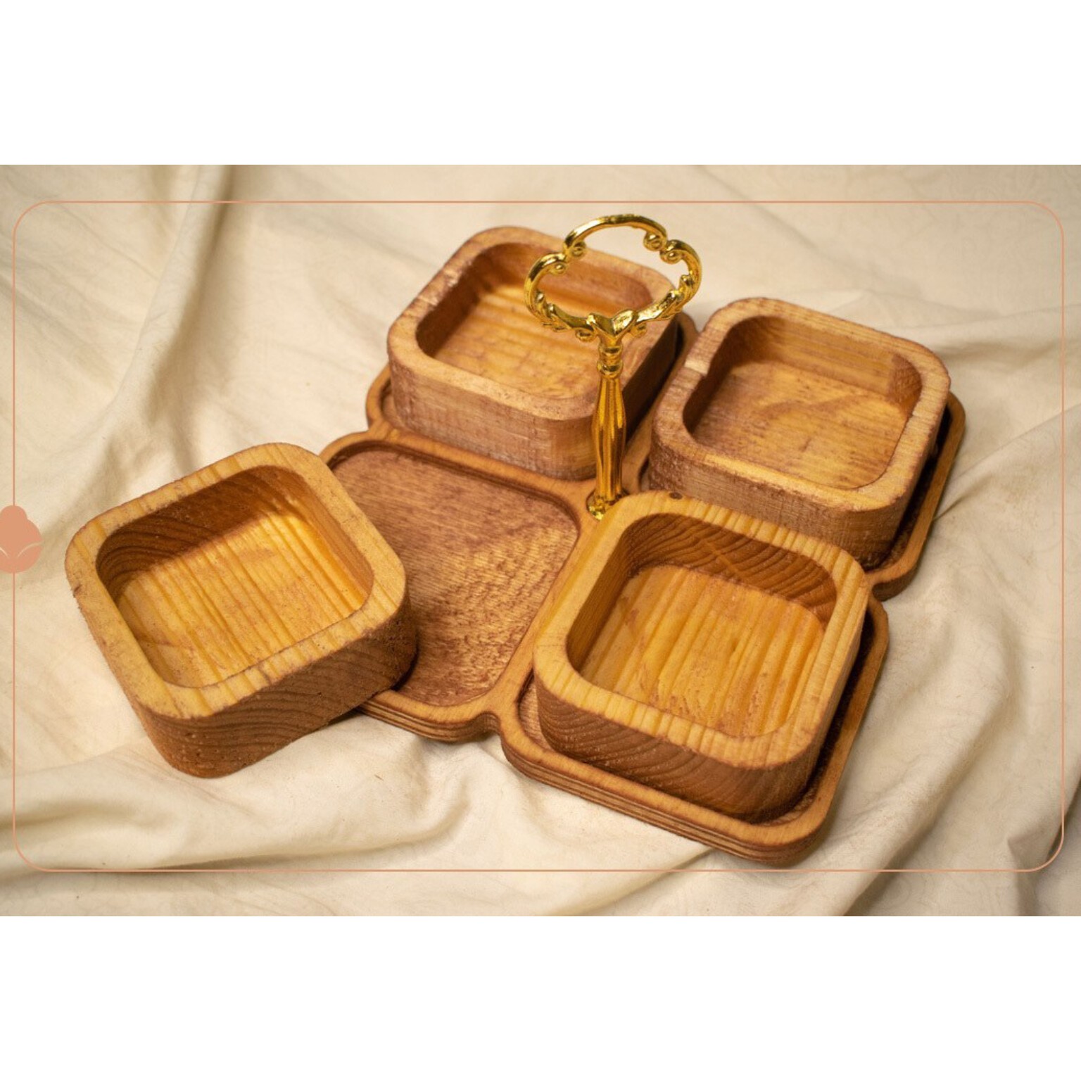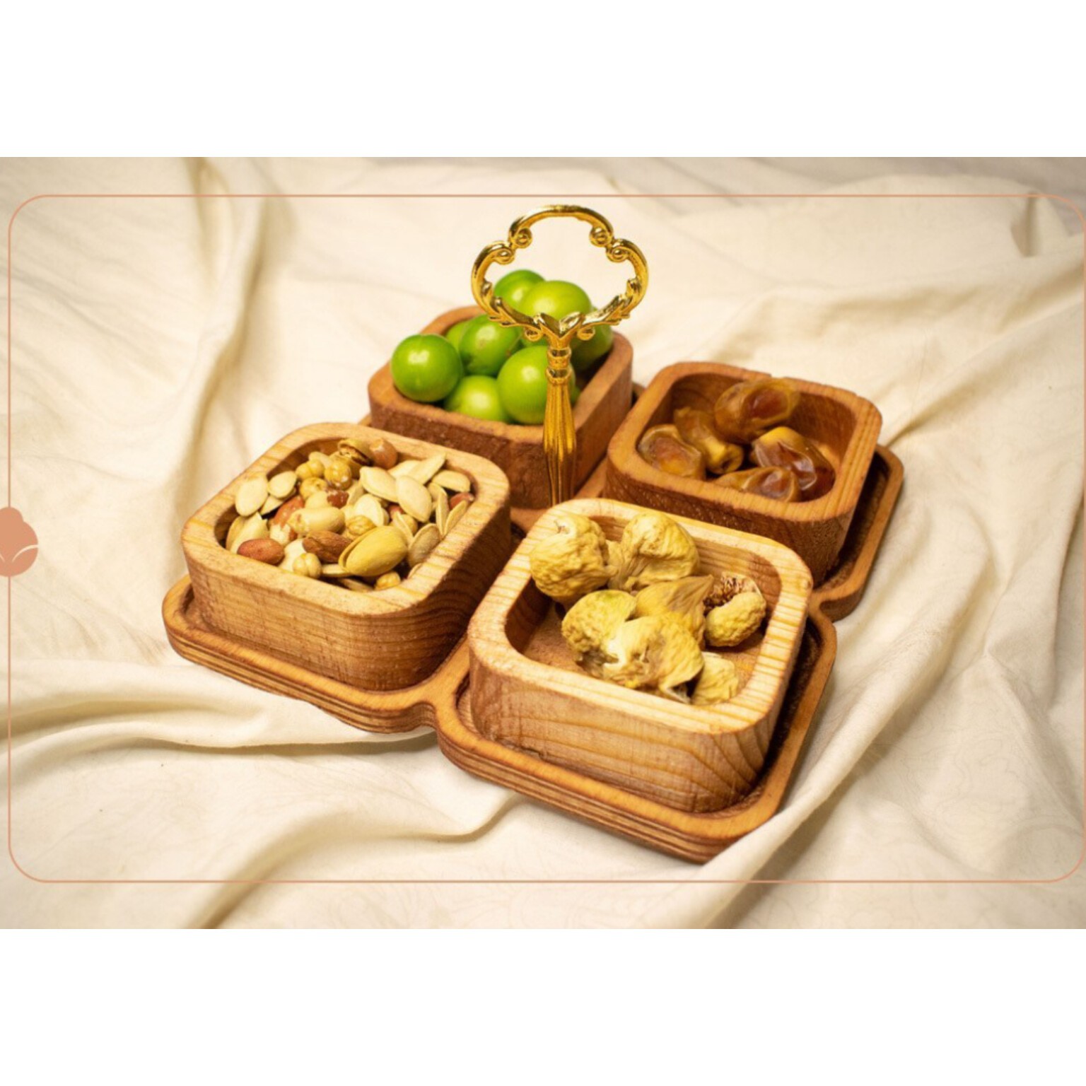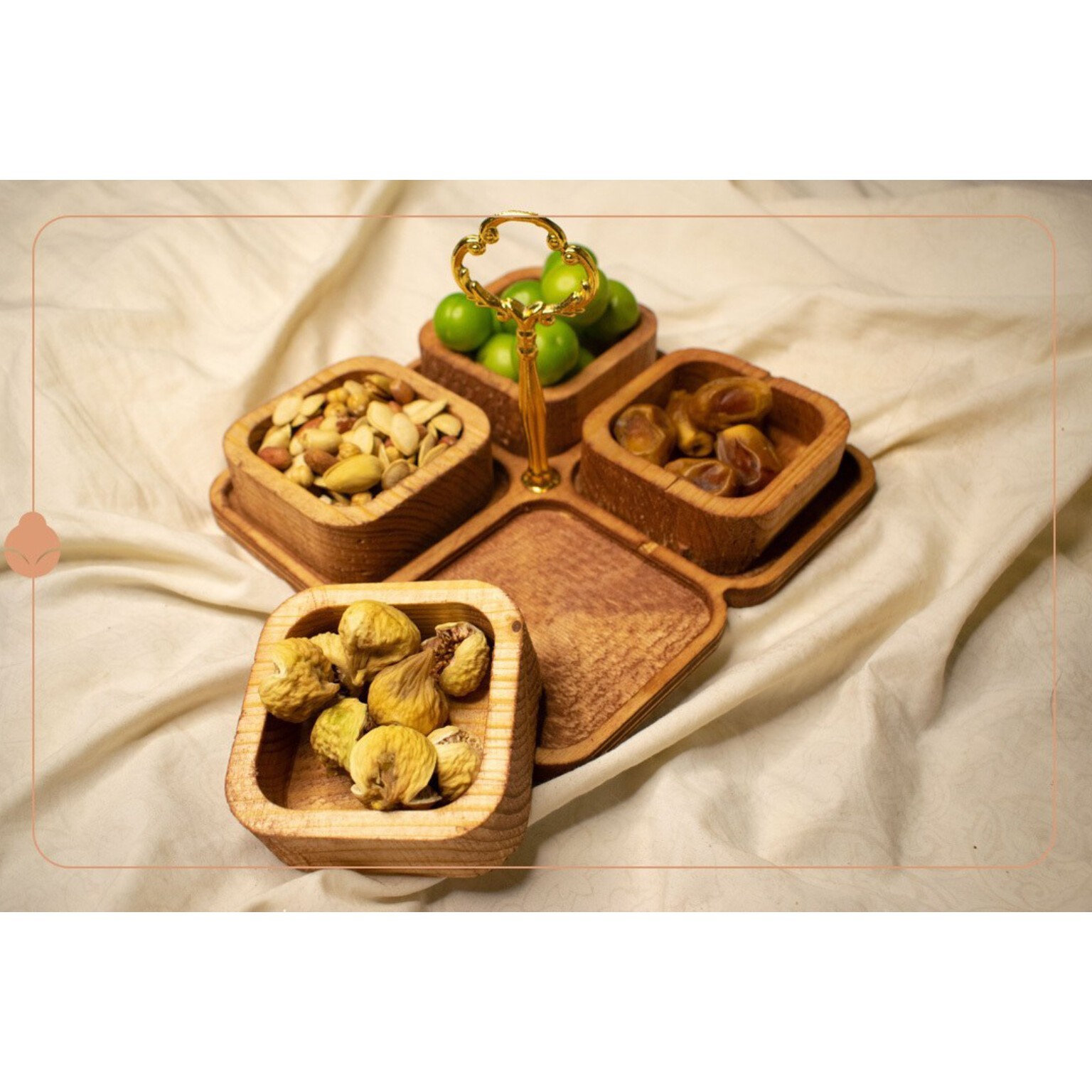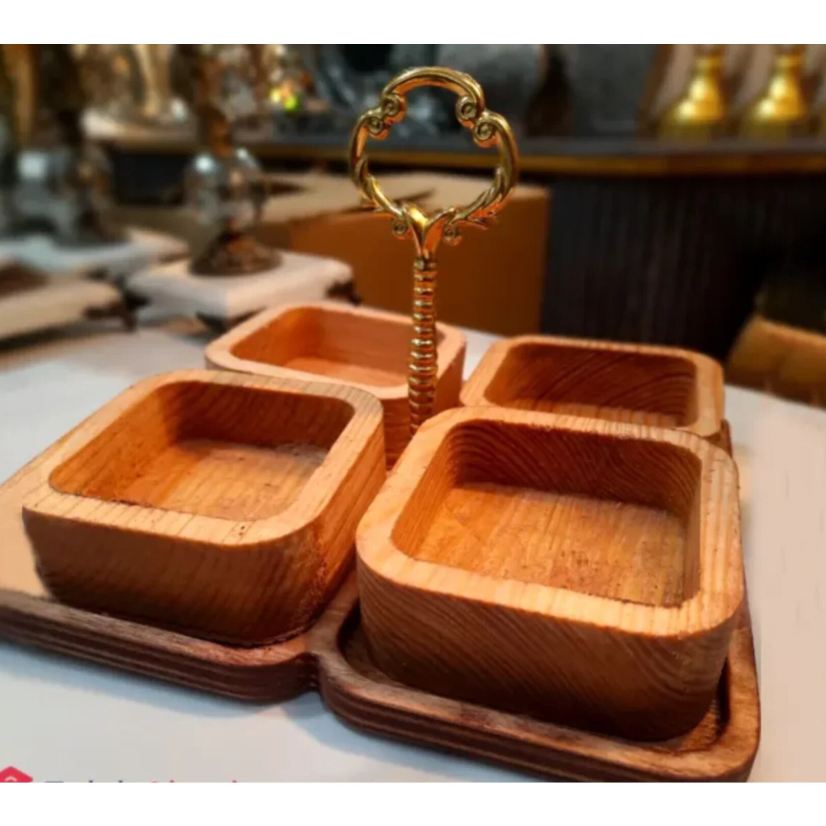 آجیل خوری چهارخانه مربع اردوخوری چهارخانه چوبی مربع اردوخوری چهارخانه دسته دار ظروف پذیرایی چوبی ست پذیرایی چوبی مبلمونسرا مدل 265491