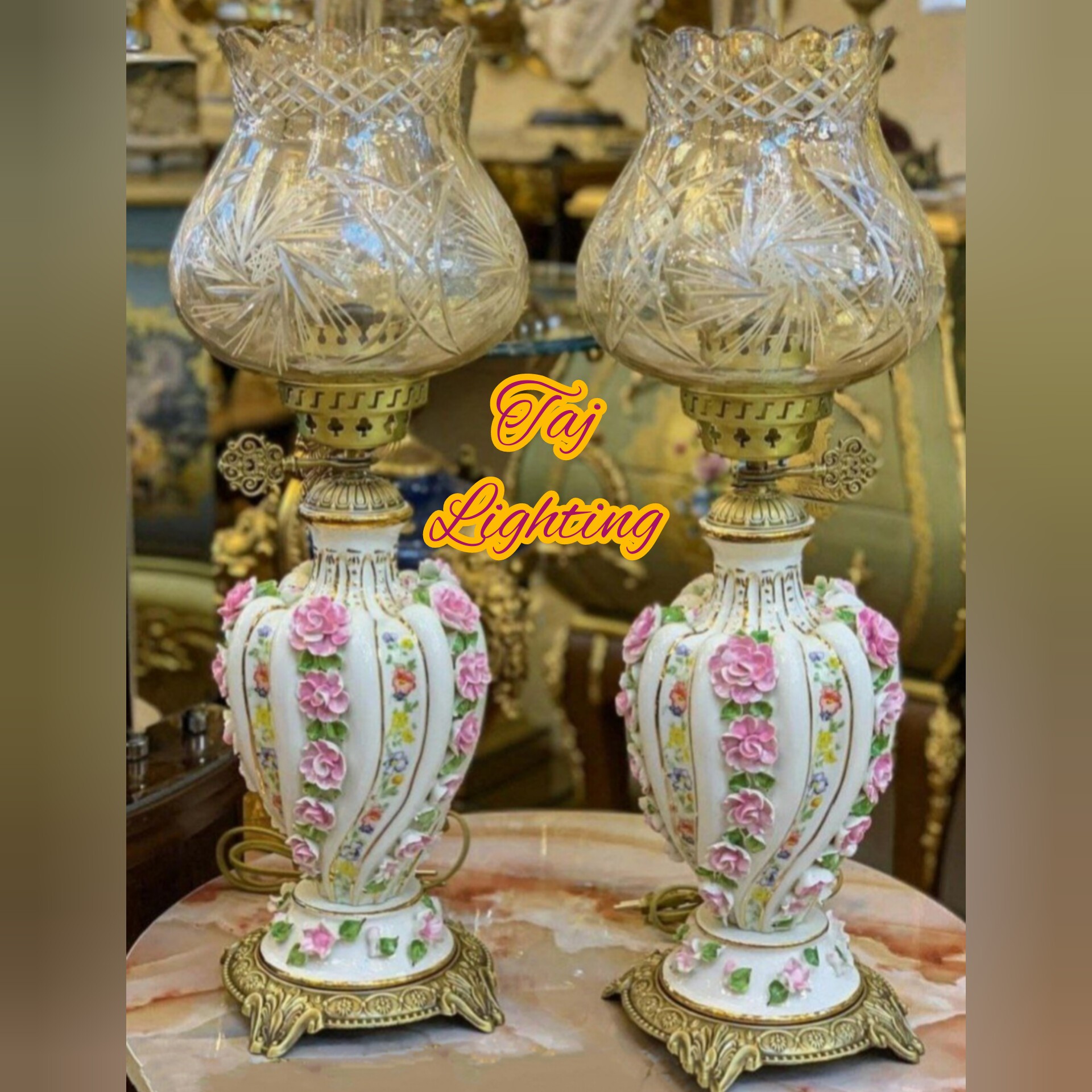 💥💥قیمت درج شده ، قیمت هر عدد چراغ میباشد لاله تراش خورشیدی رنگ لاله: شامپاینی جنس وسط تنه : چینی جنس پایه برنز با آبکاری آنتیک ارتفاع : حدود 60 سانتی متر