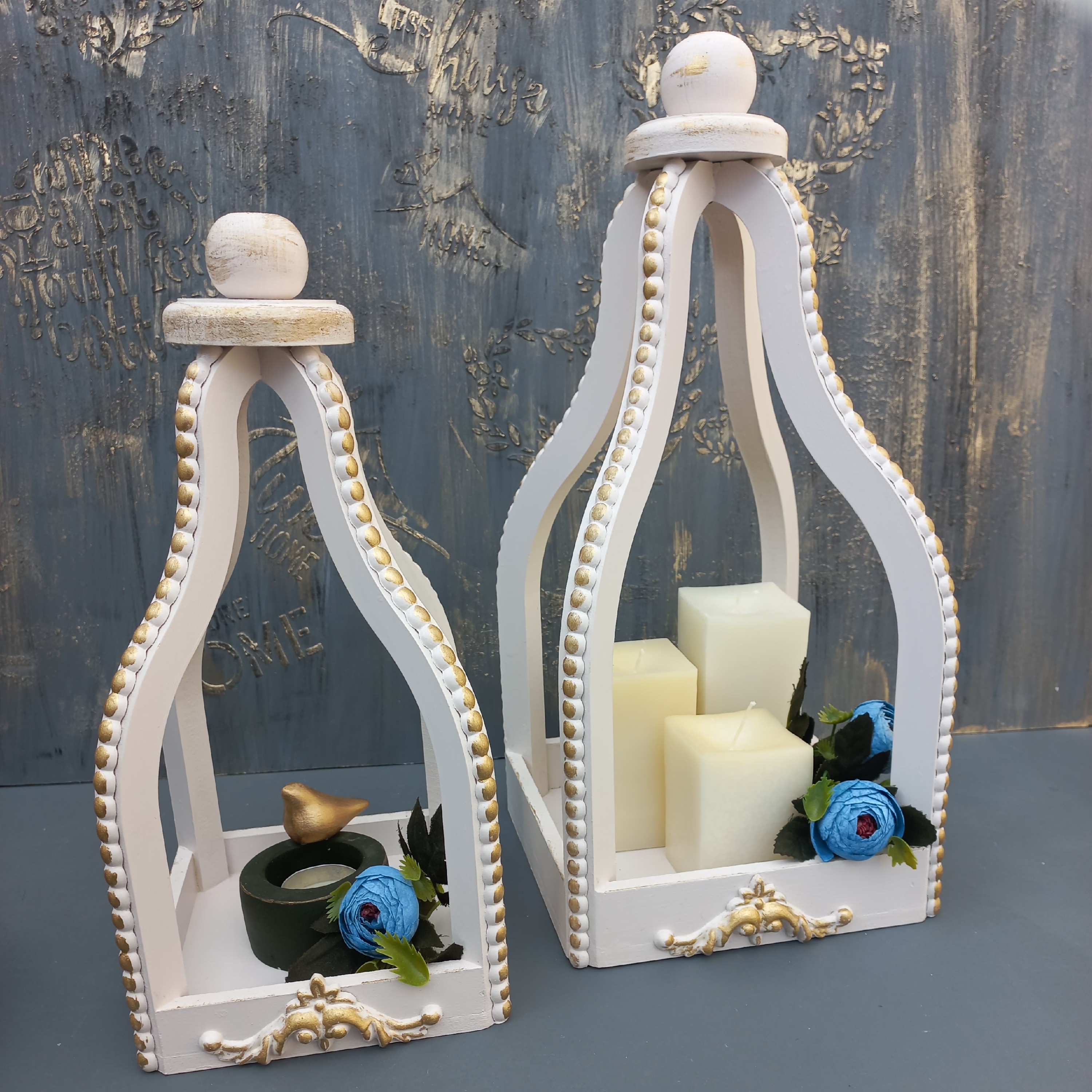 ست فانوس چوبی در دوسایز ۴۰ و ۳۰ سانتی تماما کار دست قابل اجرا در رنگ دلخواه تکی هم قابل سفارش هست ضد آب شده و قابل شستشو