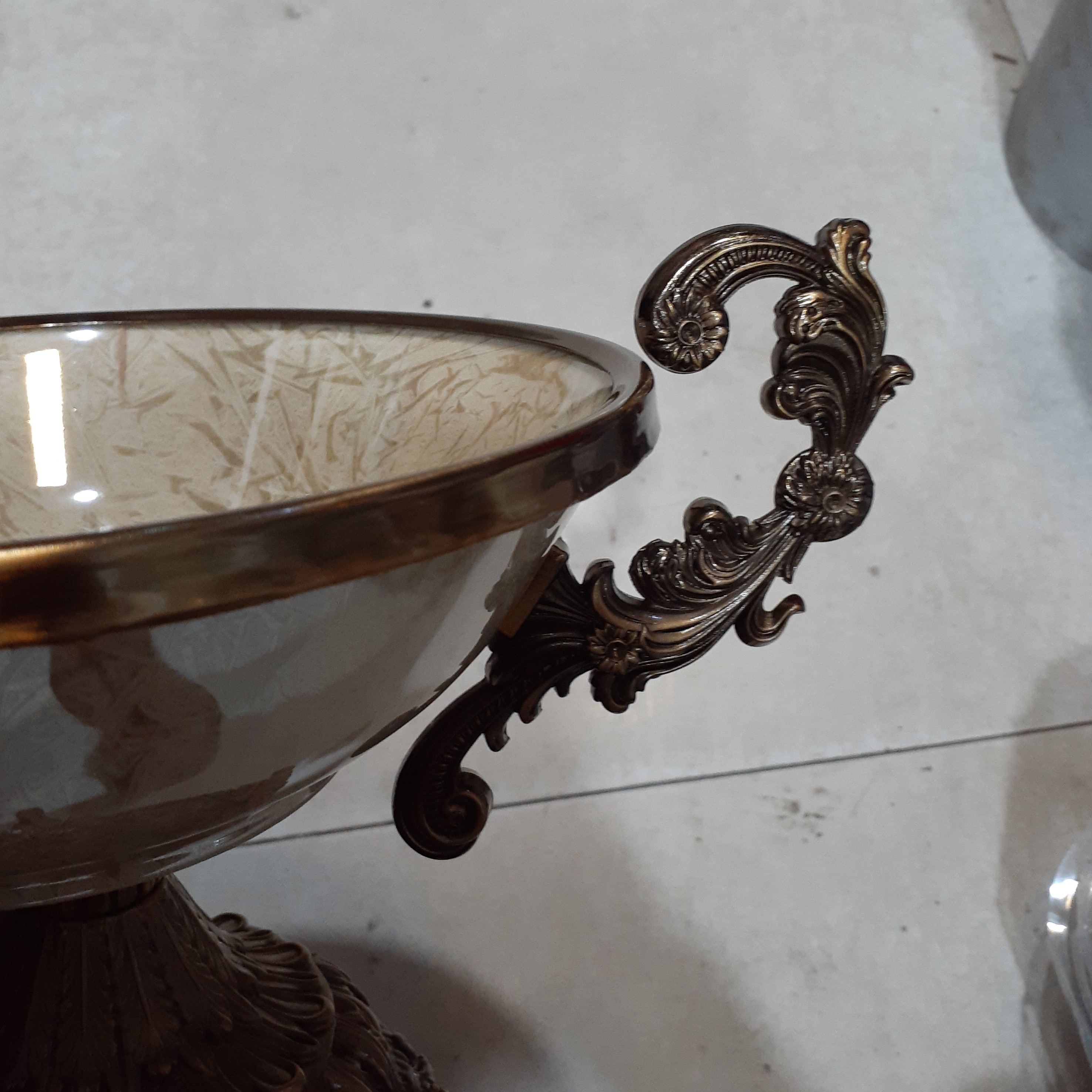 شکلات خوری چینی دربدار با پایه و درب ابکاری برنجی کیفیت عالی مبلمونسرا مدل 295853