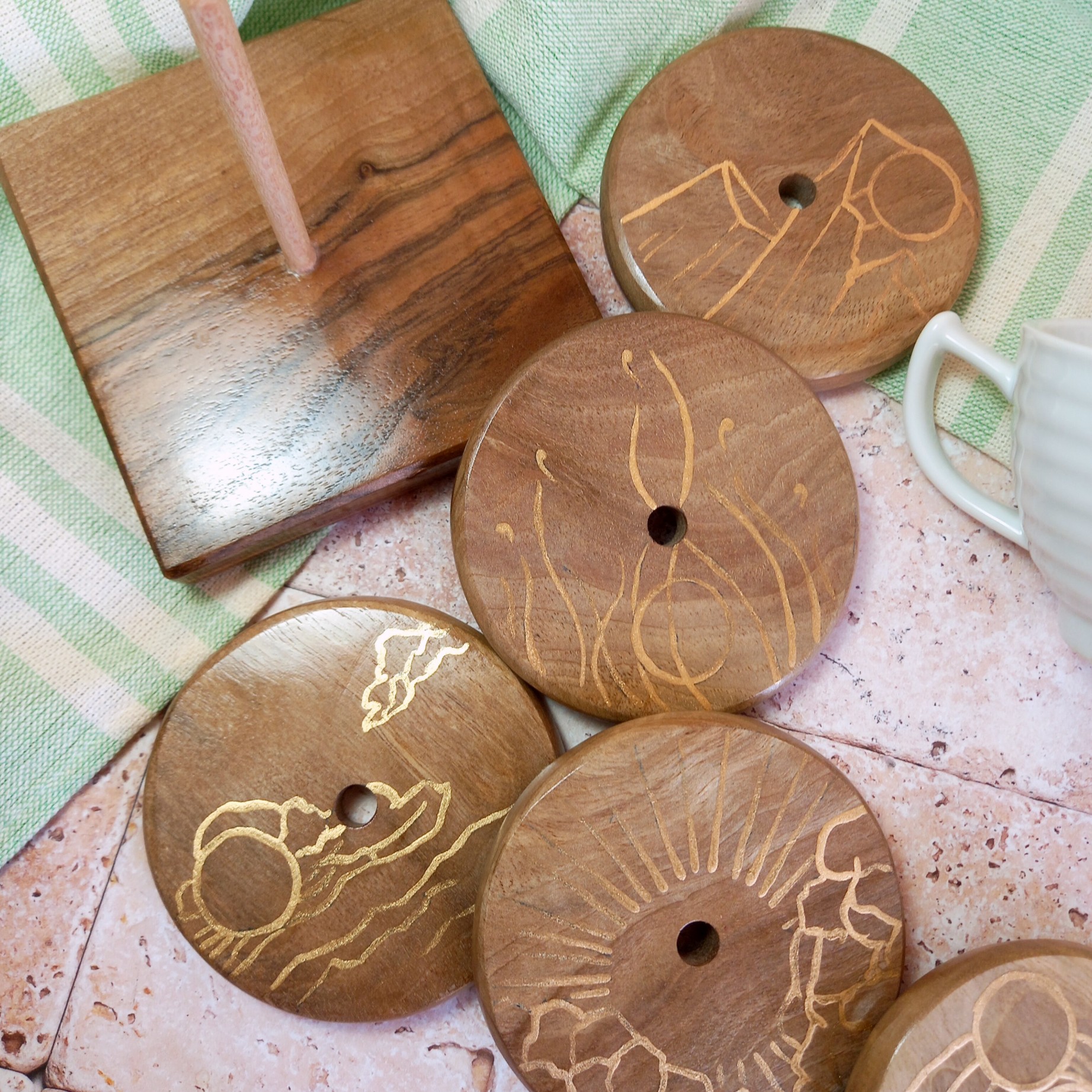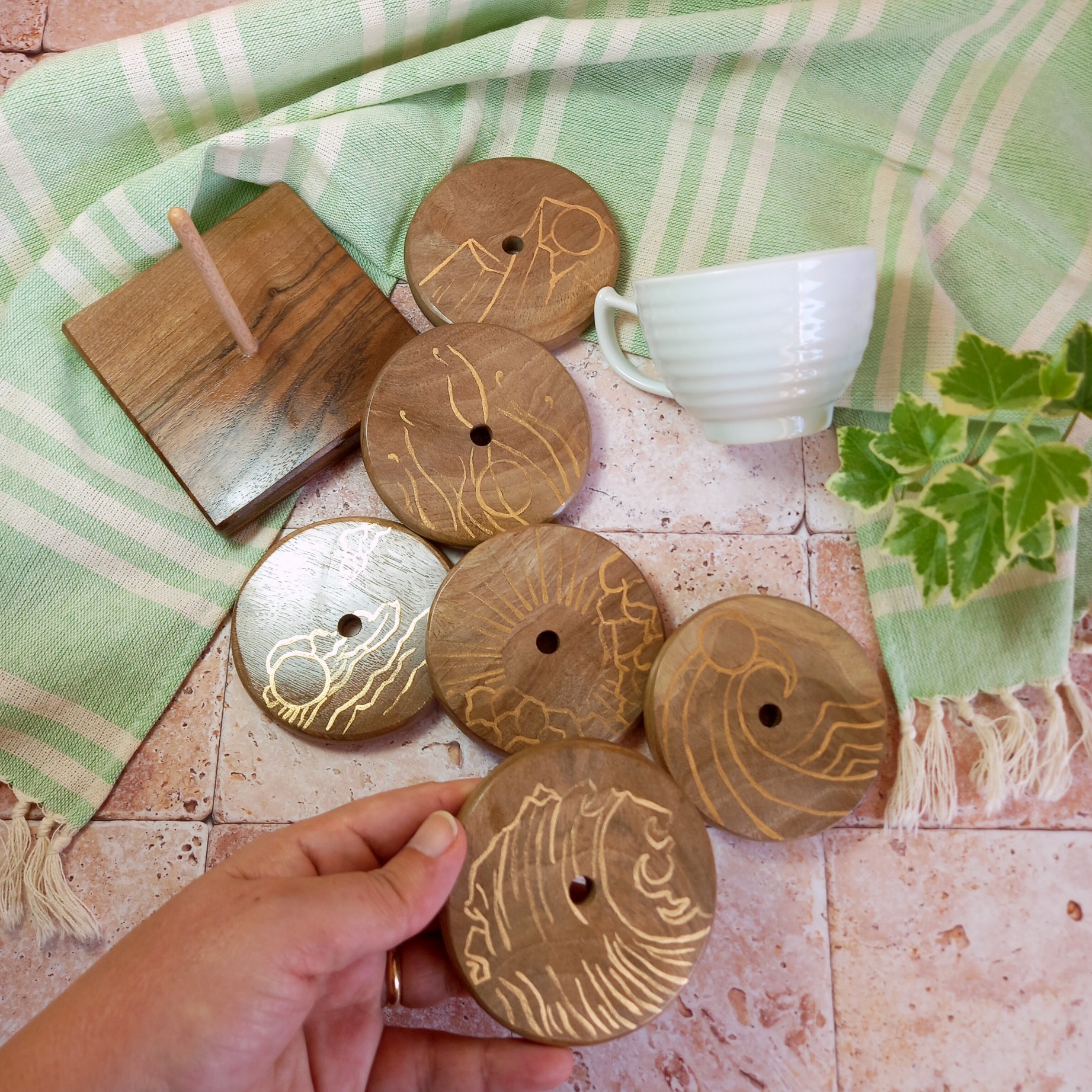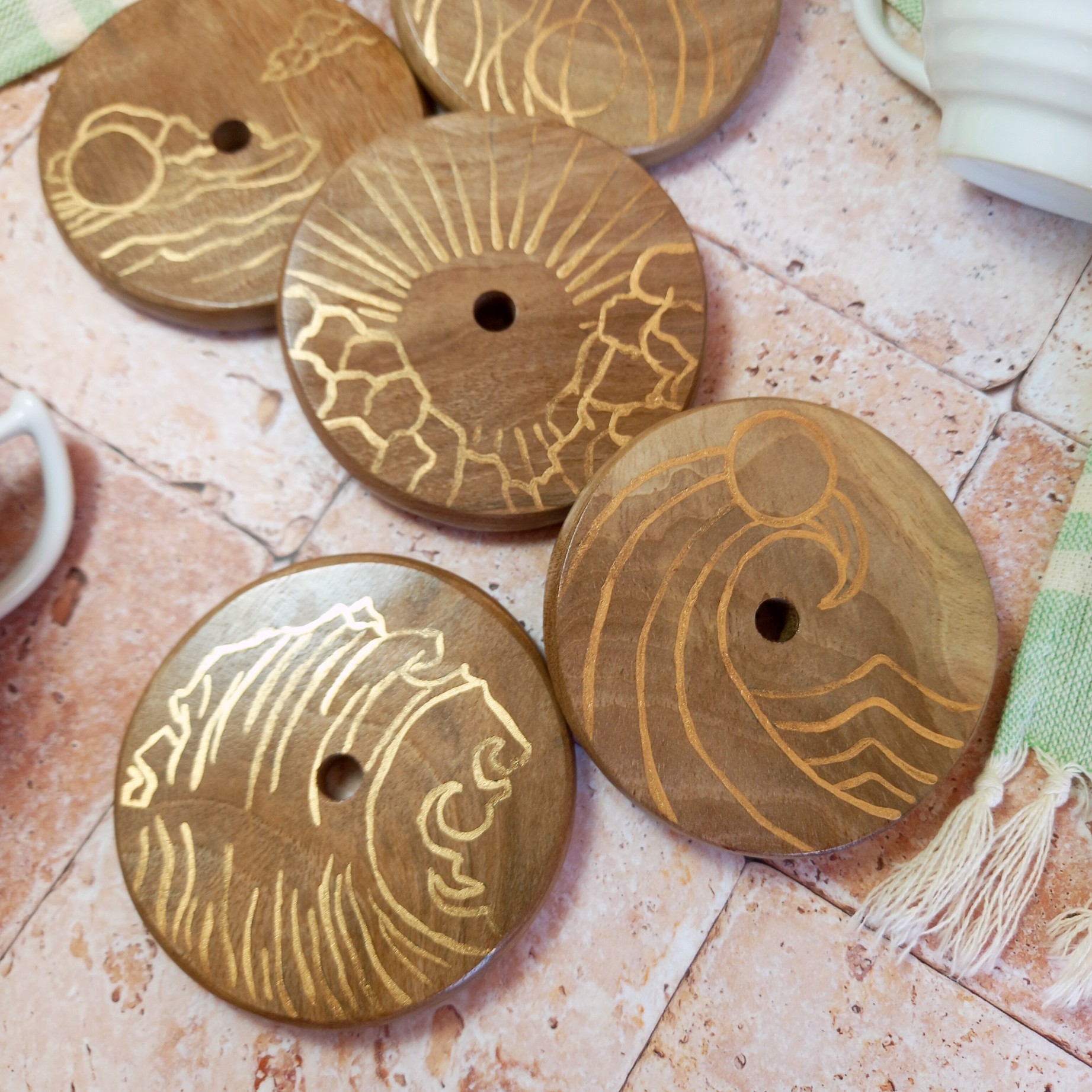ست 6 نفره زیرلیوانی چوبی دستساز طرح طبیعت چوب گردو نقاشی با دست رنگ ثابت مبلمونسرا مدل 300702