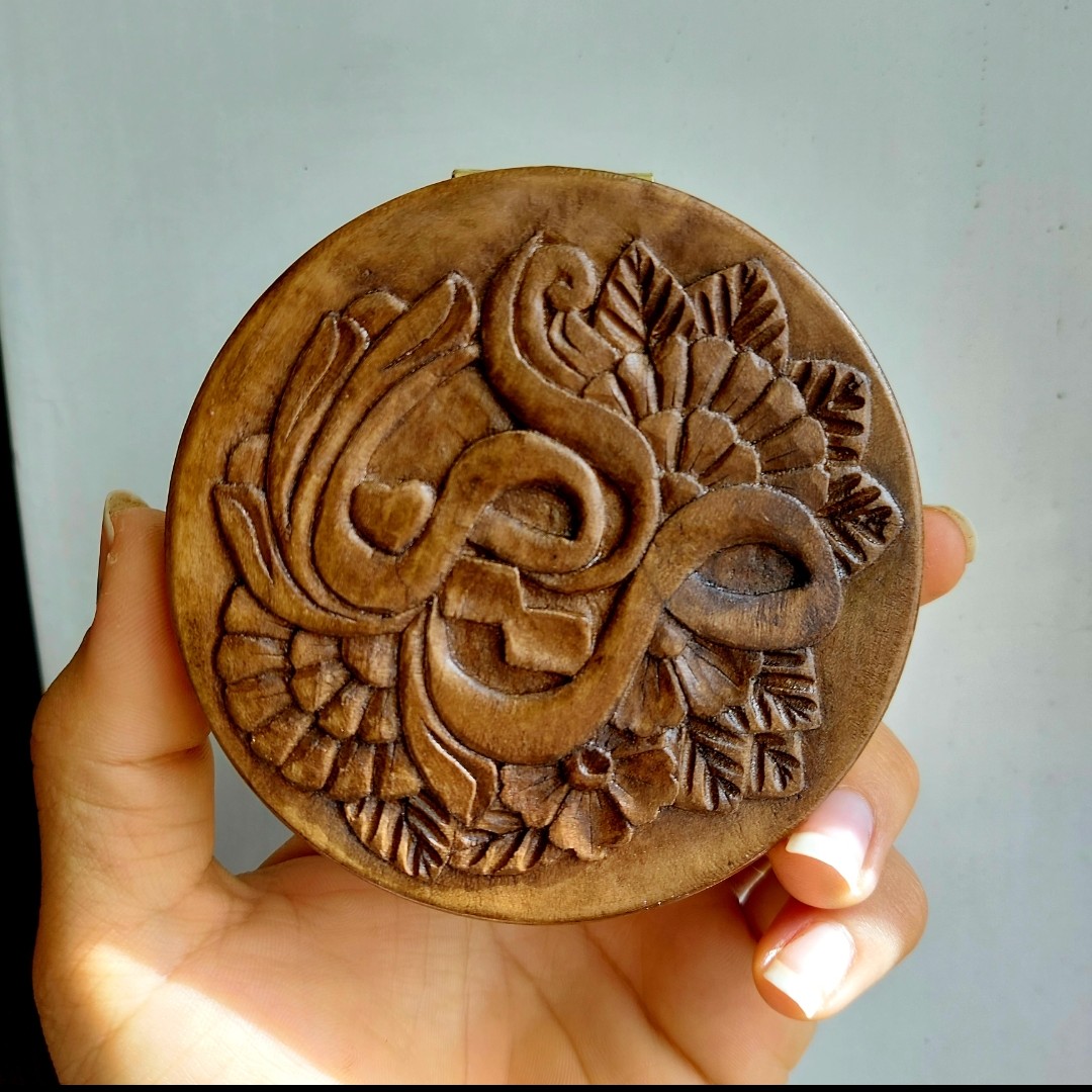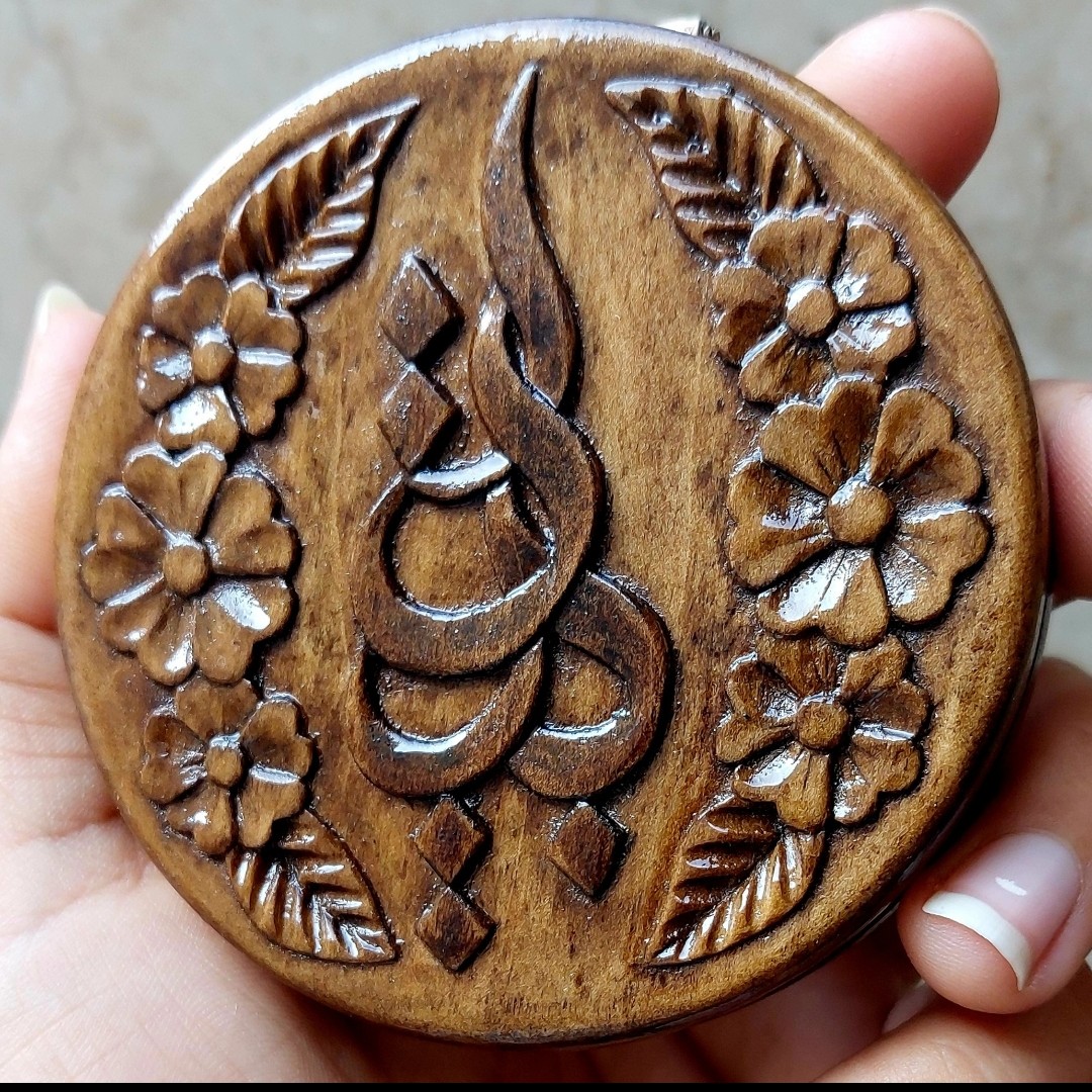 آینه تاشوی تمام منبت با طراحی اسم دلخواه _ساخته شده از چوب گلابی _ قبل سفارش برای اسم دلخواهتون پیام بدین