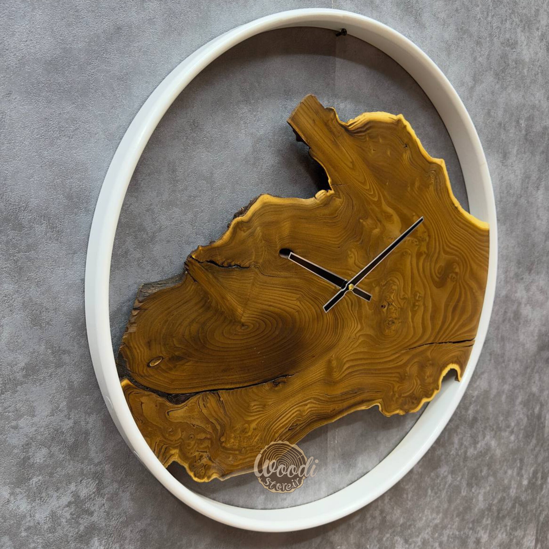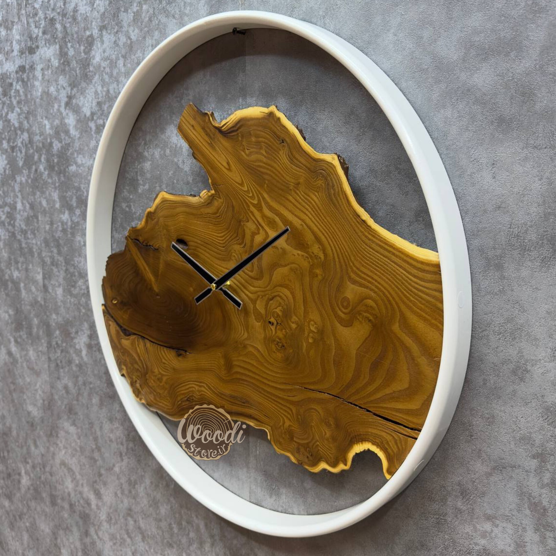 ساعت چوبی روستیک چوب زیتون فریم سفید کدC6130 قطر 60 سانت مبلمونسرا مدل 238749