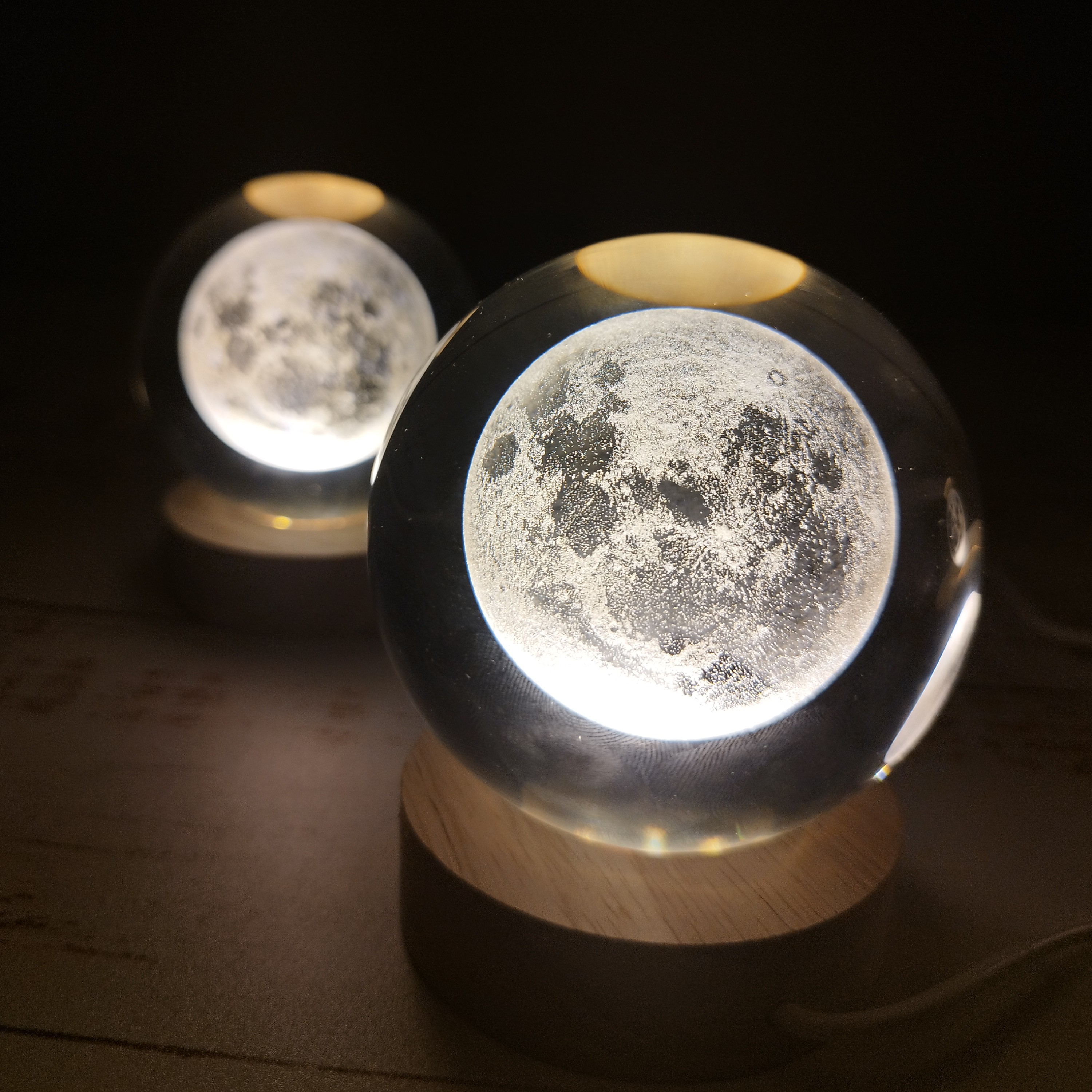 گوی کریستالی طرح ماه قطر 8 سانت ارتفاع 10 سانت سایز متوسط کیفیت عالی یو اس بی مستقیم ب برق شهری مناسب هدیه دادن و استفاده بعنوان شب خواب