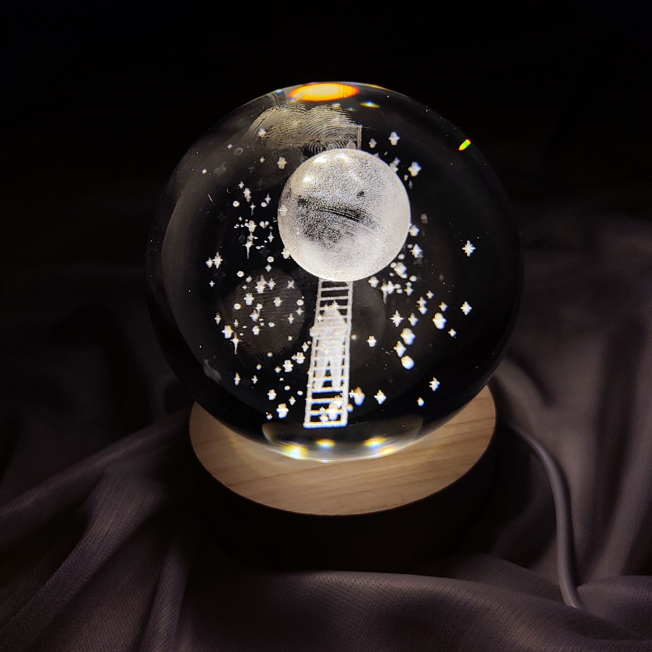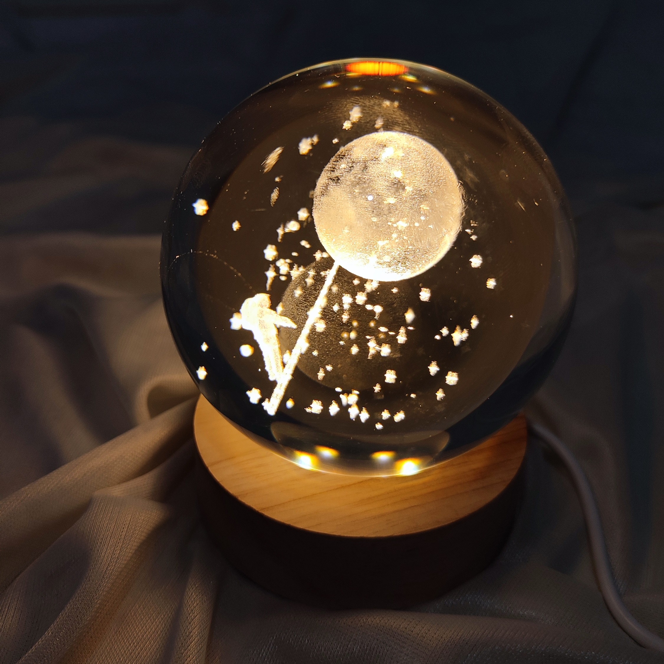 گوی کریستالی طرح فضانورد پله سوار قطر 8 سانت ارتفاع10 سانت یو اس بی مستقیم ب برق شهری وصل میشه ی شب خواب و هدیه عالی