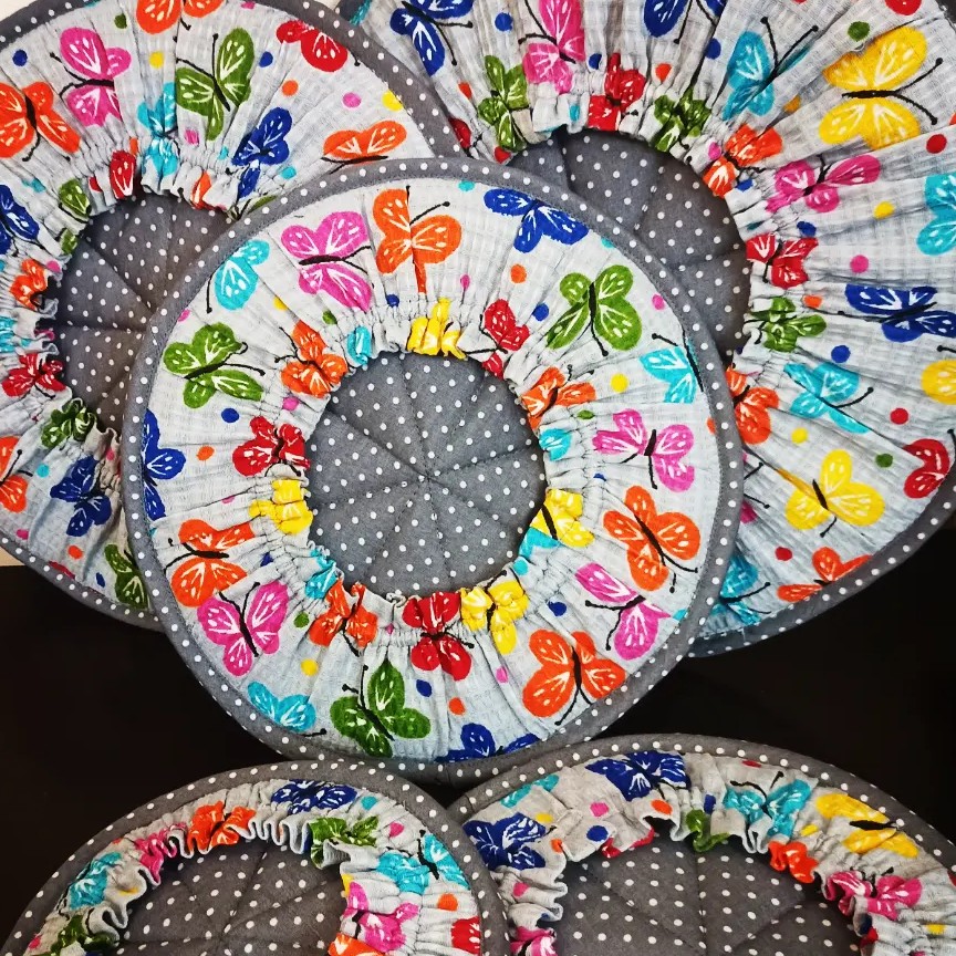 دم کنی5تیکه دوخته شده با پارچه ی پنبه ای که مقاوم در برابر حرارته دو لایه پشم شیشه فیلتری دوخت تمیز دور کار نوار اریب پارچه ای قطر دم کنی ها 25/30/35/40/45