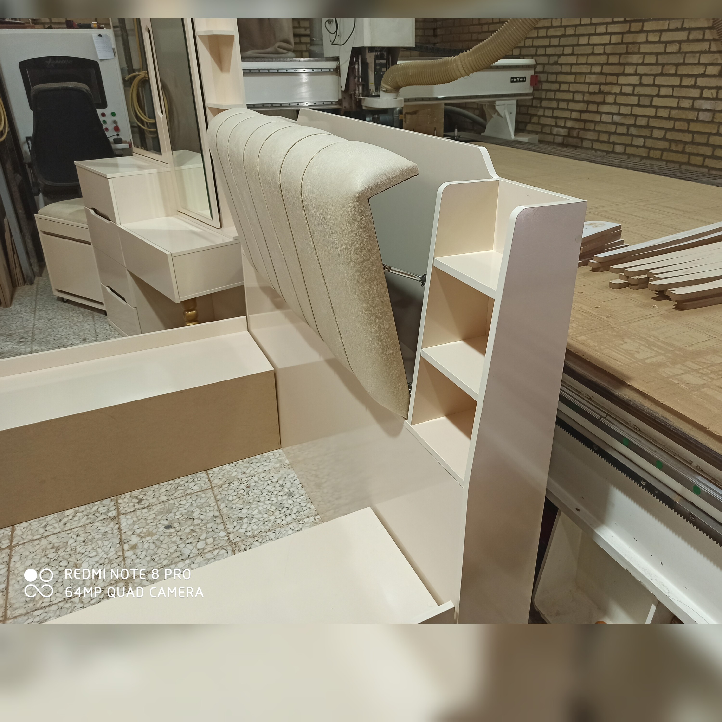 مدل درنا دارای دو طرف باکس و میزآرایش دو طرف آینه و پاتختی ال ای دی دار تک کشو می باشد.این مدل مجهز به صندلی جاکفشی دار نیز می باشد.سرتخت این مدل دارای جای مخفی هست.