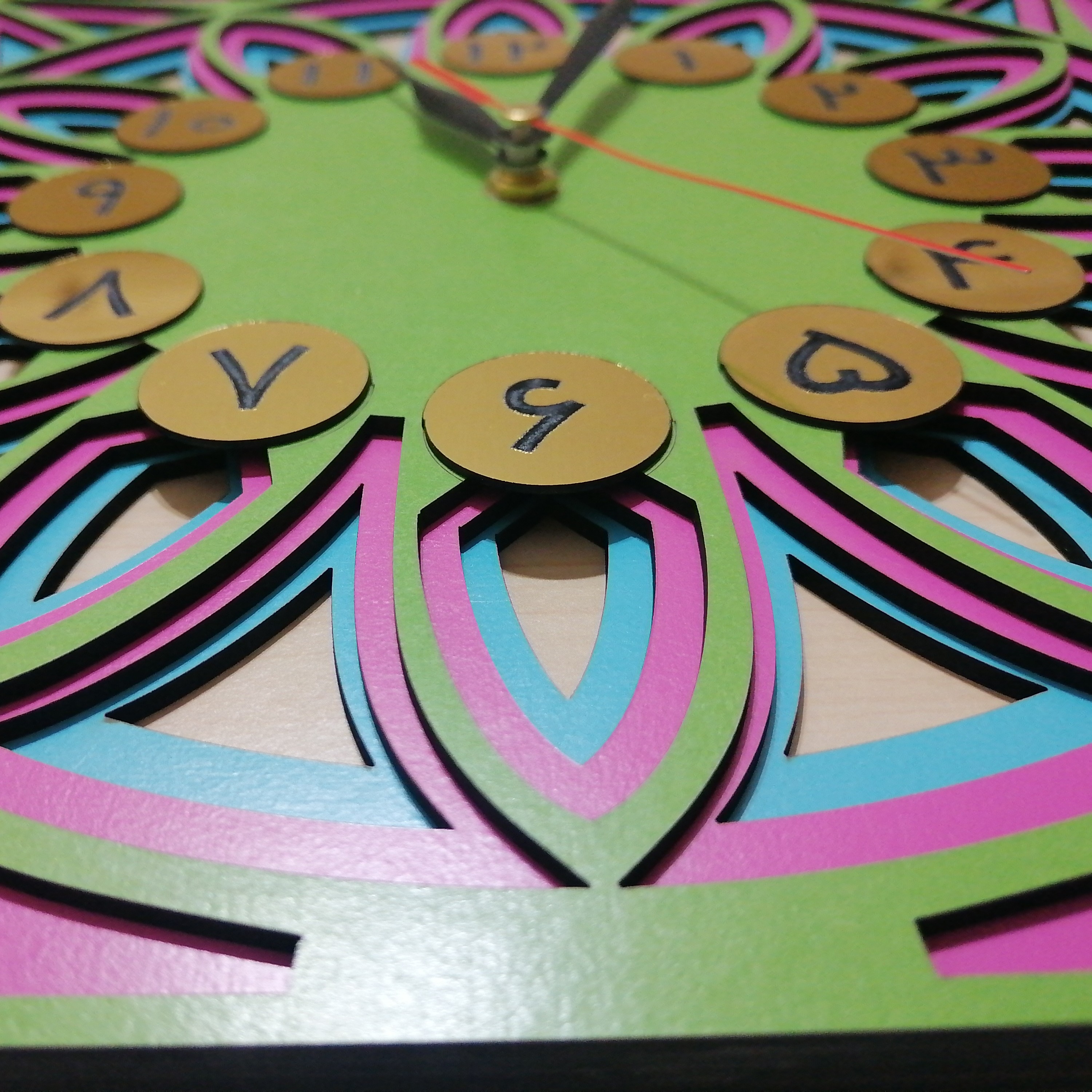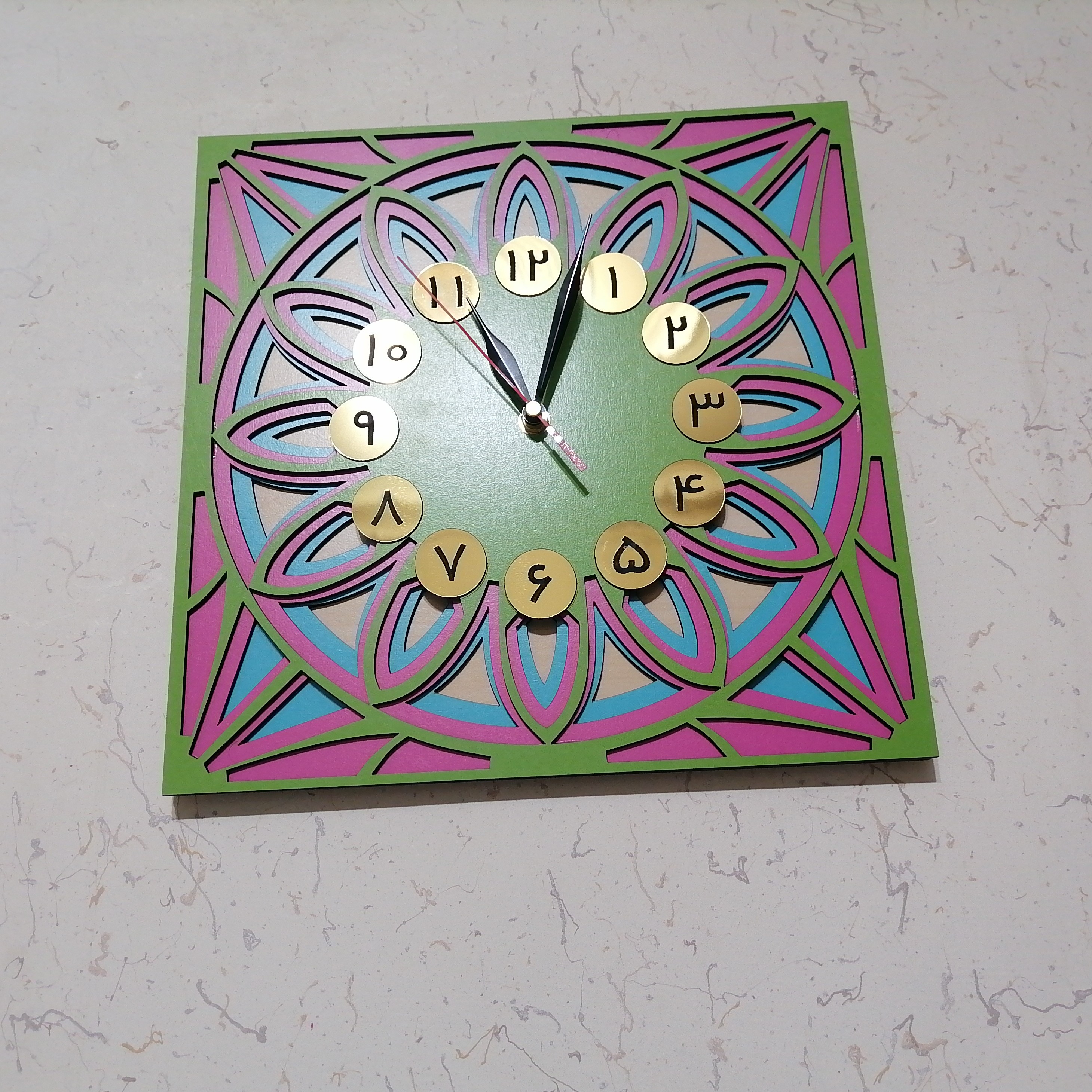 ساعت دیواری چند لایه چهار لایه ام دی اف سه میل و اعداد با مولتی استایل طلایی