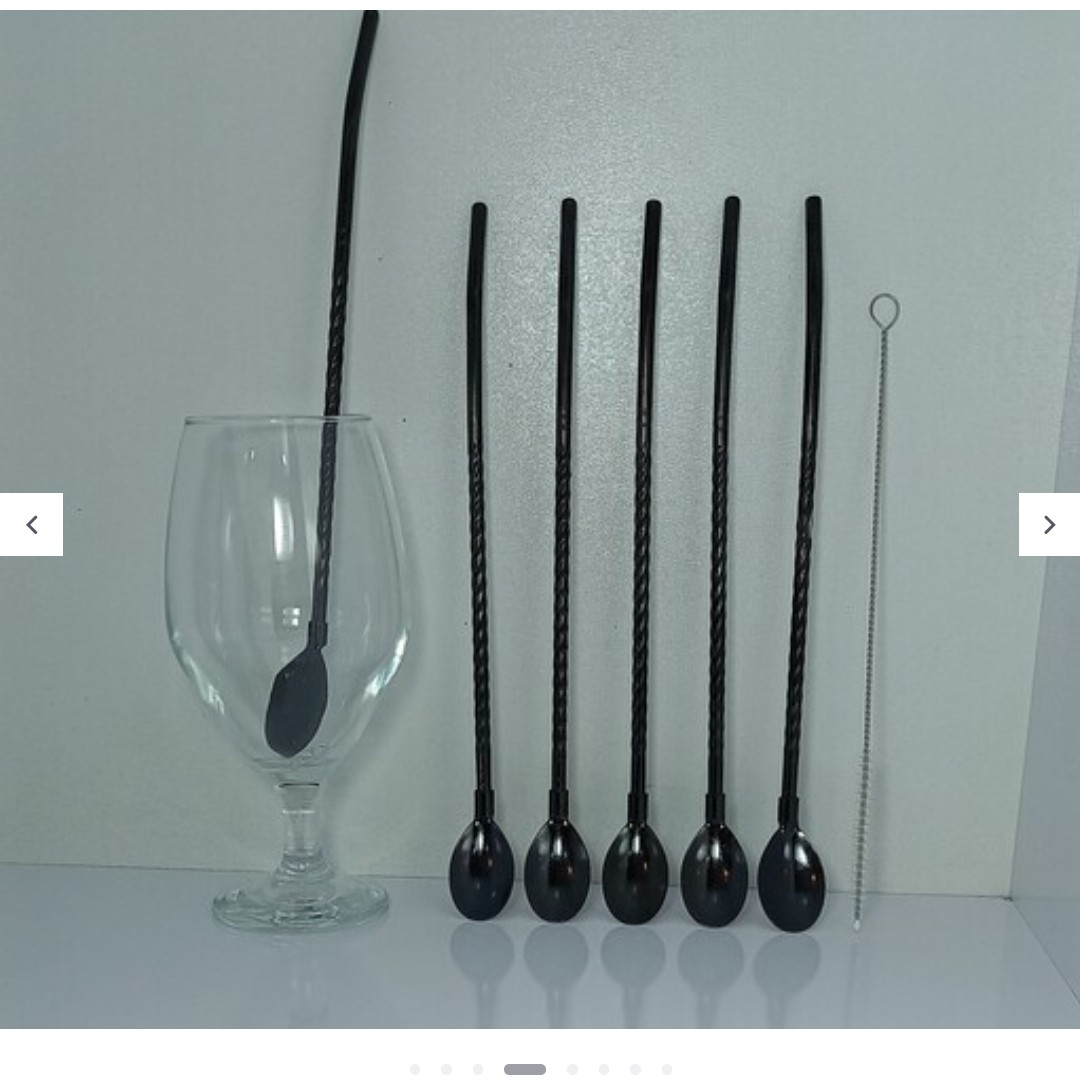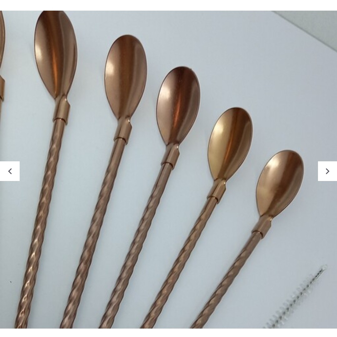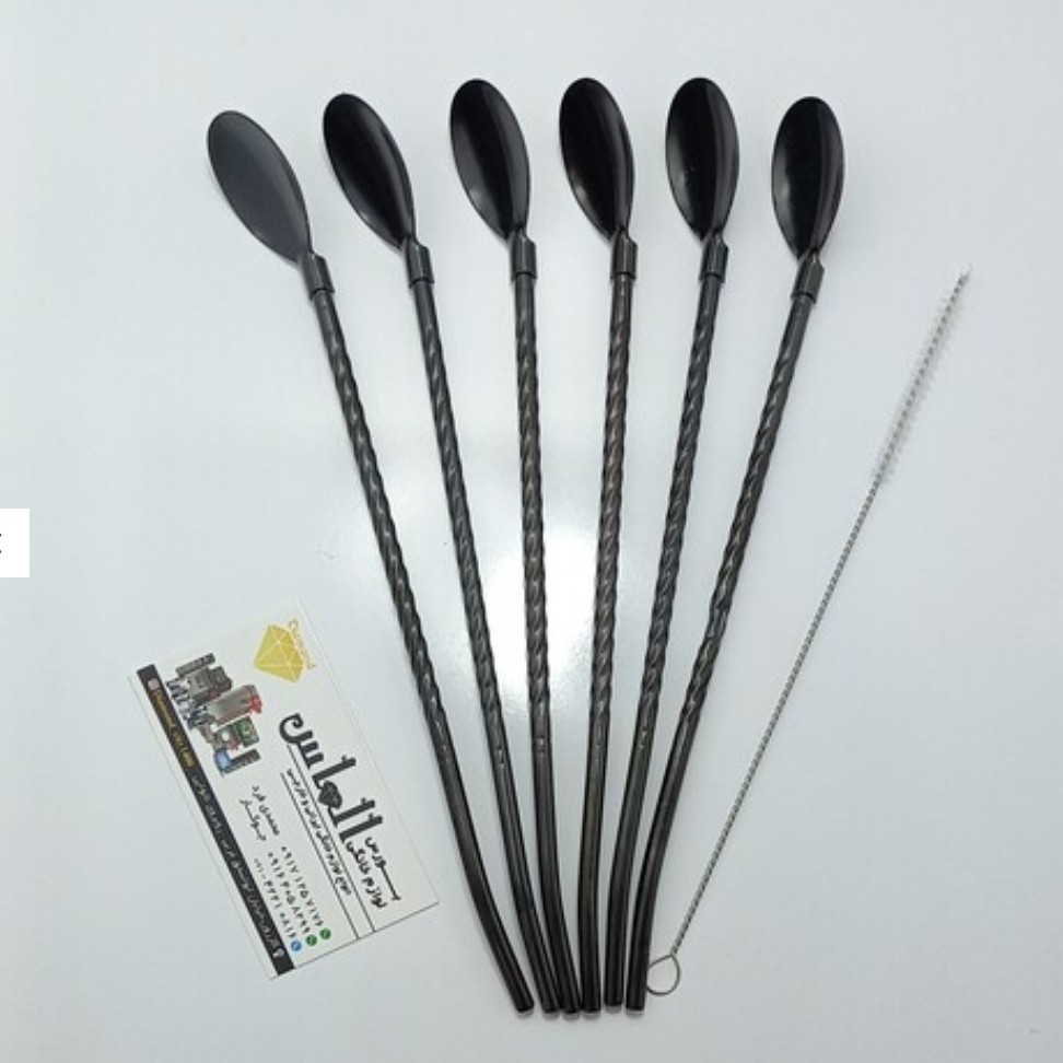 نی شربتی قاشق دار استیل رنگ مسی و مشکی همراه با فرچه. قاشق شربتی نی دار . نی قاشق دار مبلمونسرا مدل 276871