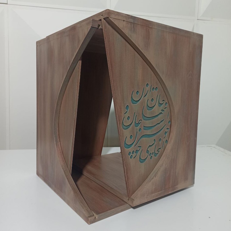 میز عسلی پتینه با خوشنویسی اینجا کسی ست پنهان، برند ناوک مبلمونسرا مدل 224804