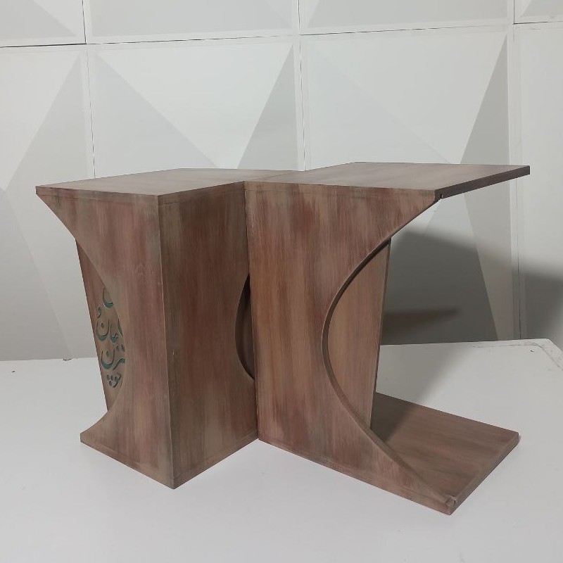 یک جفت میز عسلی از جنس ام دی اف با اجرای پتینه درکنار هم میتونن میز صبحانه باشن و جداگانه هم قابل استفاده هستن. ایده طراحی از شعر اینجا کسی ست پنهان گرفته شده و کاملا دکوراتیو در ساخته شده