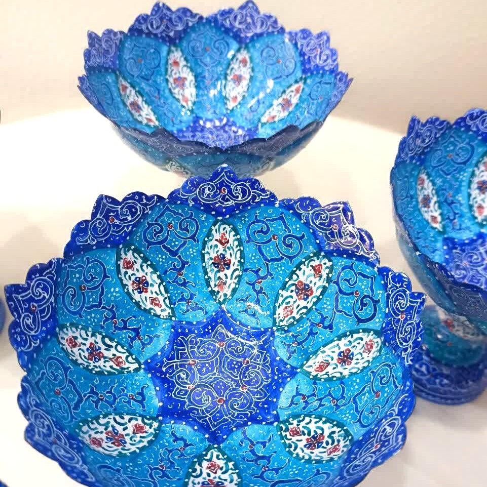 6عددظرف پایه دارمیناکاری سایز14 ارتفاع11سانت قطر دهانه12سانت مناسب برای آجیل خوری،بستنی خوری،قندان وهفت سین جنس مس قابل شستشو وضدخش لطفا قبل از ثبت خرید با غرفه دار ازموجودی محصول اطمینان پیدا کنید.